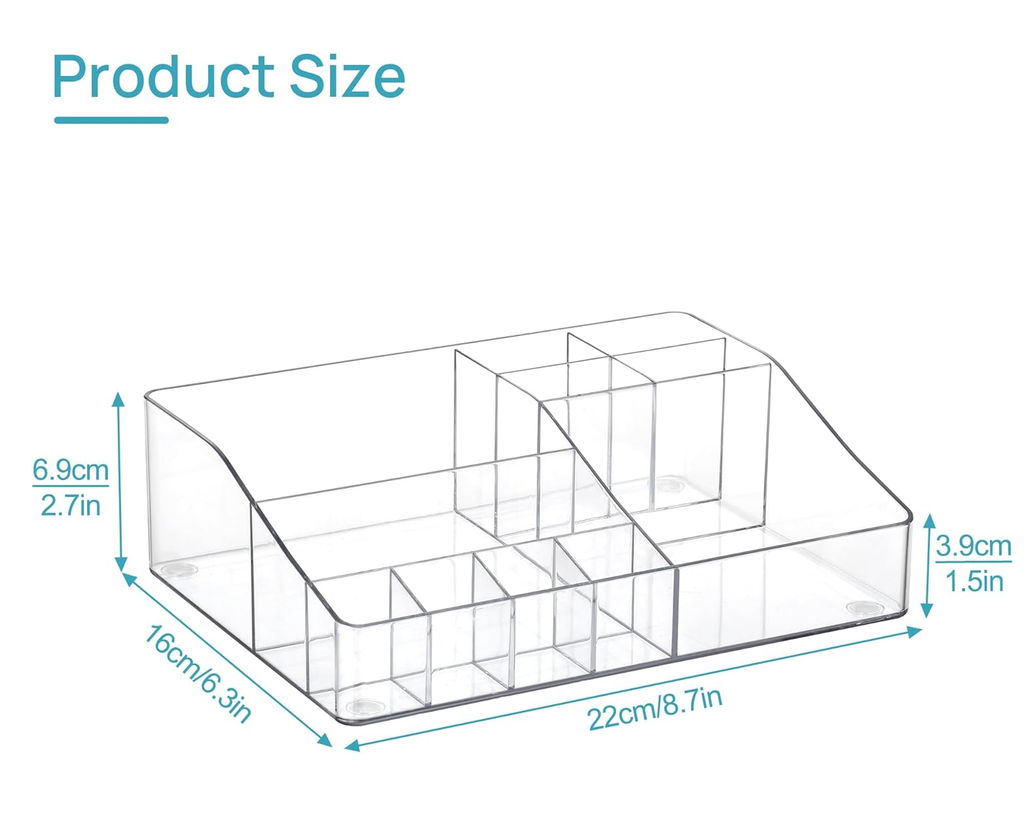 Crafted from high-quality transparent plastic, this organizer combines durability with a sleek aesthetic that complements any décor style. The single-tier layout is compact yet spacious, featuring multiple compartments that make it easy to sort and access your daily essentials while maintaining a clutter-free surface.