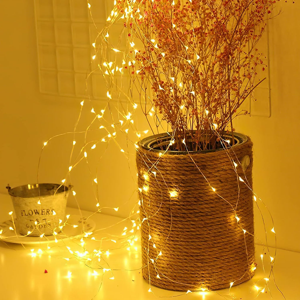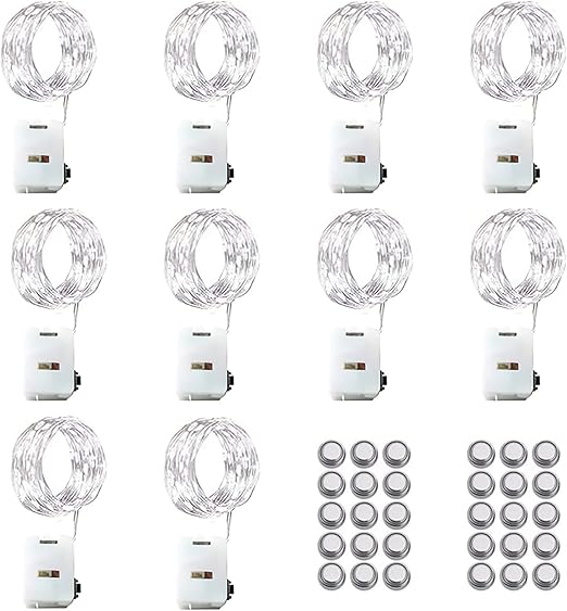 Add a magical glow to any space with this 10 Pack of LED Fairy String Lights. Each 3-meter (10-foot) strand features 30 micro LEDs on flexible copper wire, offering three twinkle modes to suit your mood or occasion. Battery operated and lightweight, these lights are ideal for creative DIY decoration and ambiance lighting for weddings, parties, holidays, or gift accents.