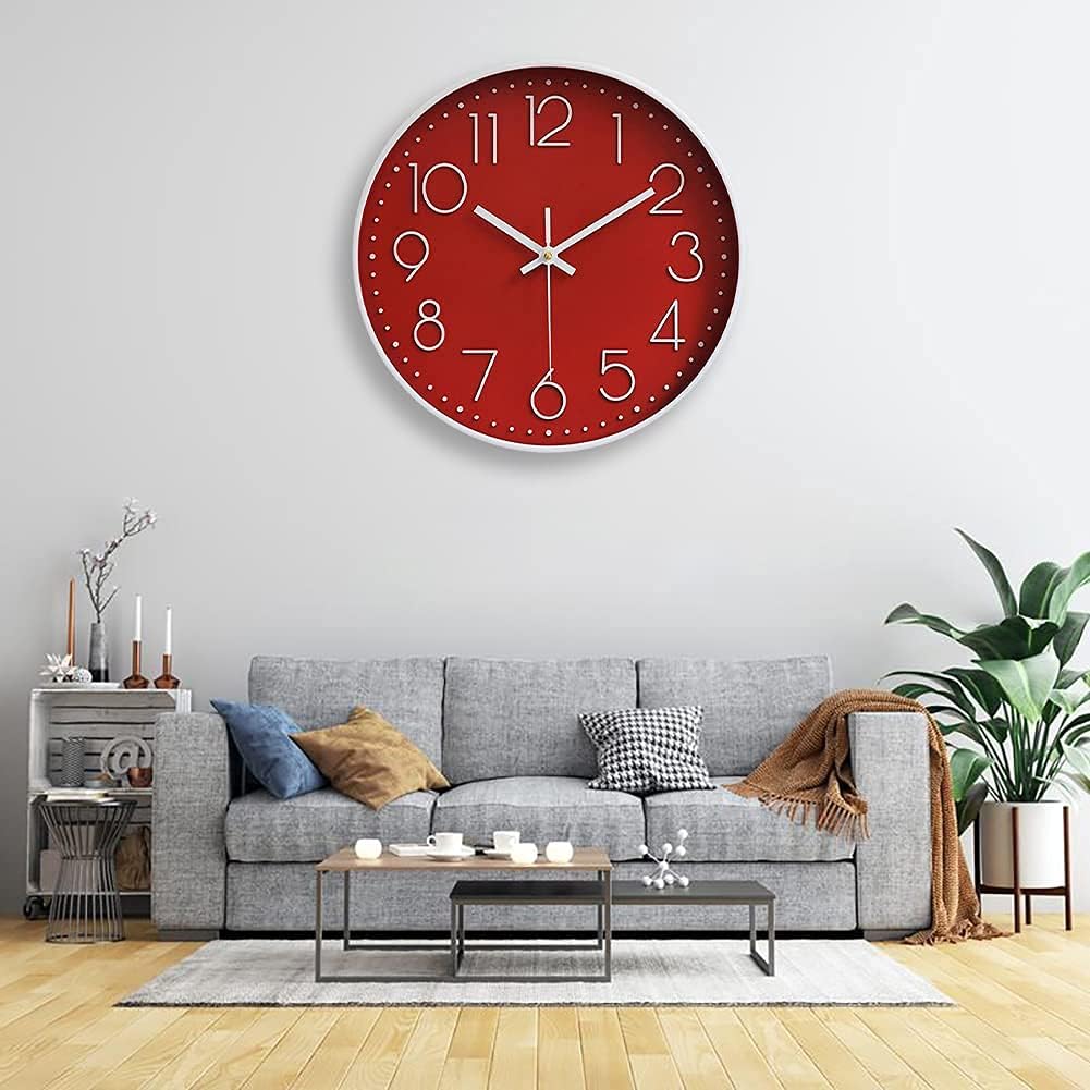 12-Inch Silent Non-Ticking Wall Clock, Modern Red Battery Clock for Home & Office
