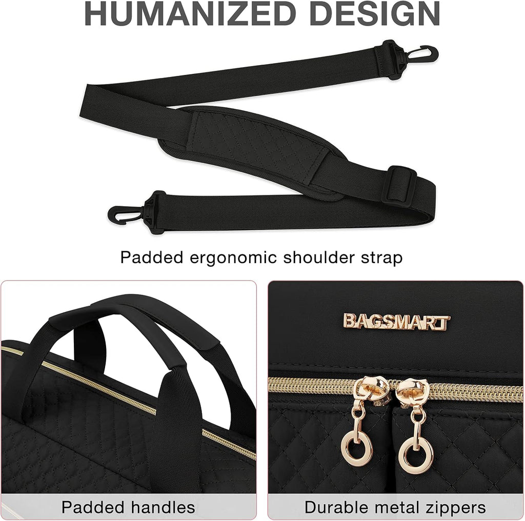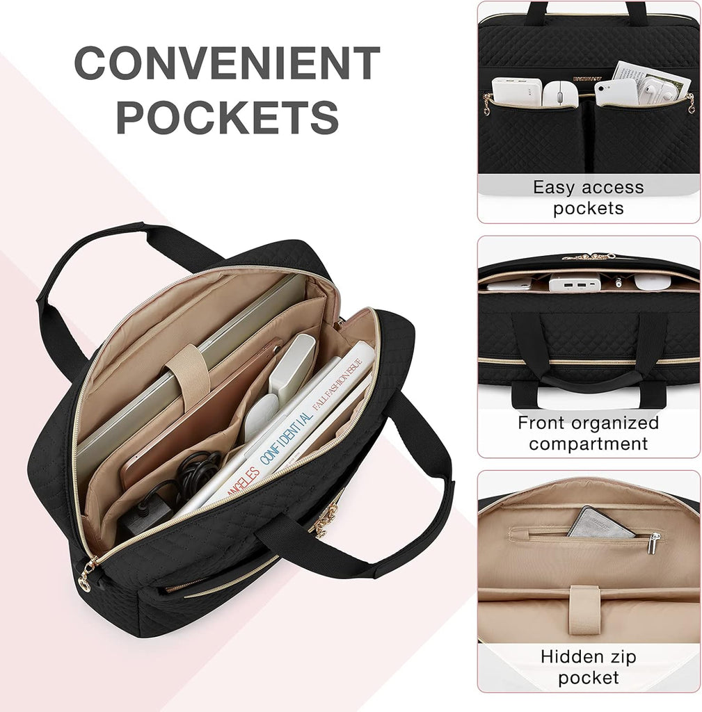 The 15.6 Inch Laptop Bag is a stylish and practical briefcase designed for modern, professional women. Crafted from durable, water-resistant fabric, it offers excellent protection for your laptop and other essentials while maintaining a sleek, elegant look. Perfect for work, business trips, travel, or daily commutes, this large laptop case combines functionality with fashion.
