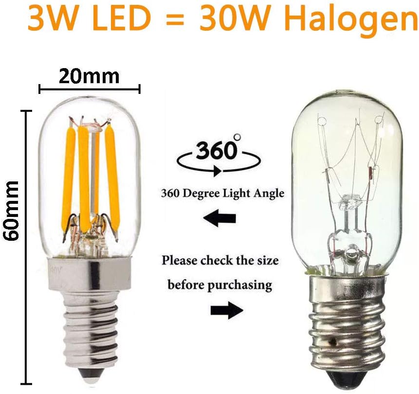 - Small Edison Screw (SES) Base – Designed with a standard E14 screw base for easy installation in most kitchen and household appliances.