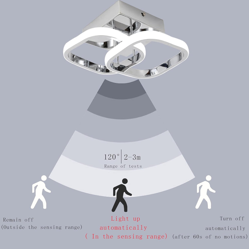 Illuminate your space intelligently and stylishly with this 22W LED Motion Sensor Ceiling Light. Designed with a sleek double-square shape and finished in modern silver, this ceiling fixture provides powerful 6000K cold white light. Ideal for hallways, garages, stairwells, and porches, it features a built-in motion detector that activates the light automatically when movement is sensed—making it both energy-saving and safe. Its flicker-free, glare-free illumination and durable construction make it perfect for modern homes.