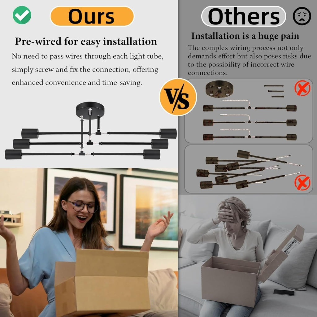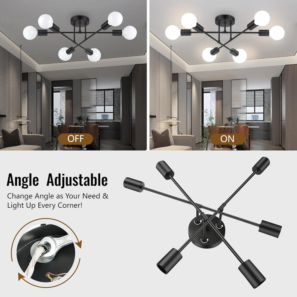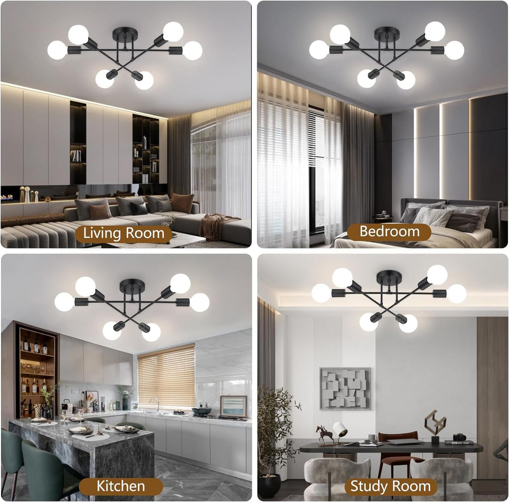 6-Light Fixture for Bright Illumination – Ensures ample lighting for larger rooms.