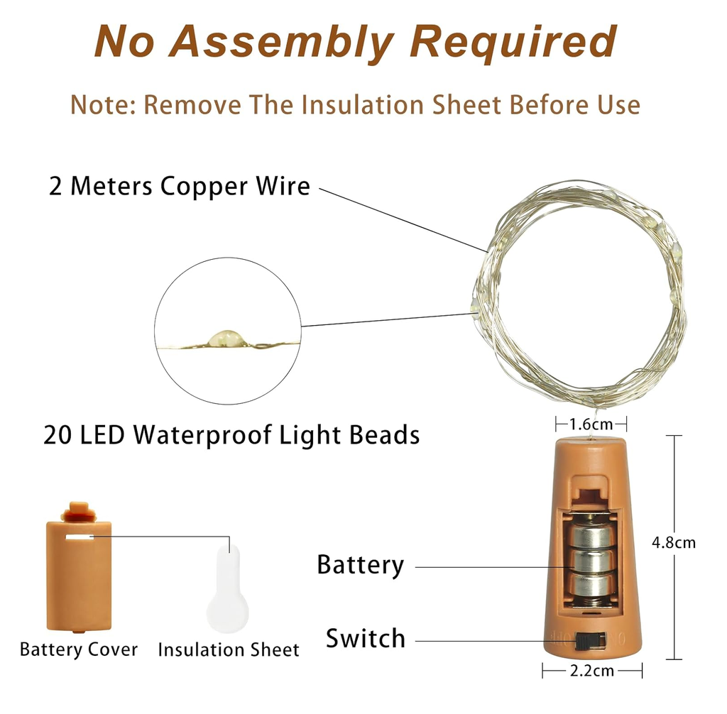 These 10 packs of 2M (6.6ft) multi-color bottle fairy lights are designed to bring a whimsical touch to any event or home décor. With 20 LED bulbs per string, they’re perfect for DIY projects, party decorations, and adding color to bottles or jars. The flexible copper wire makes them easy to arrange however you like.
