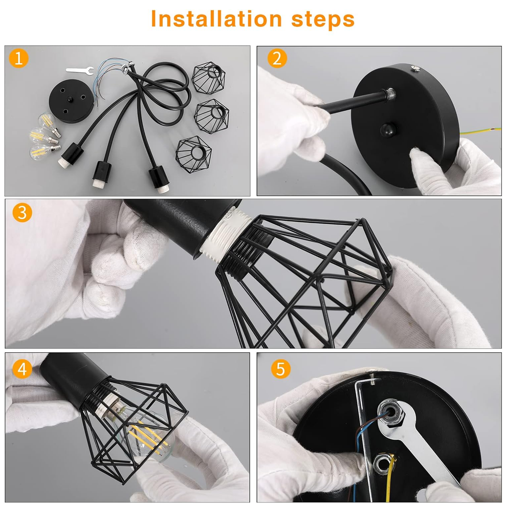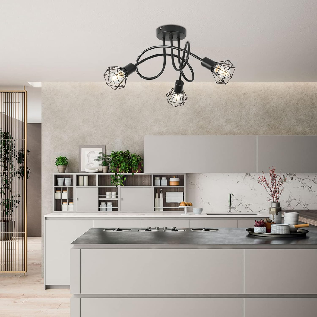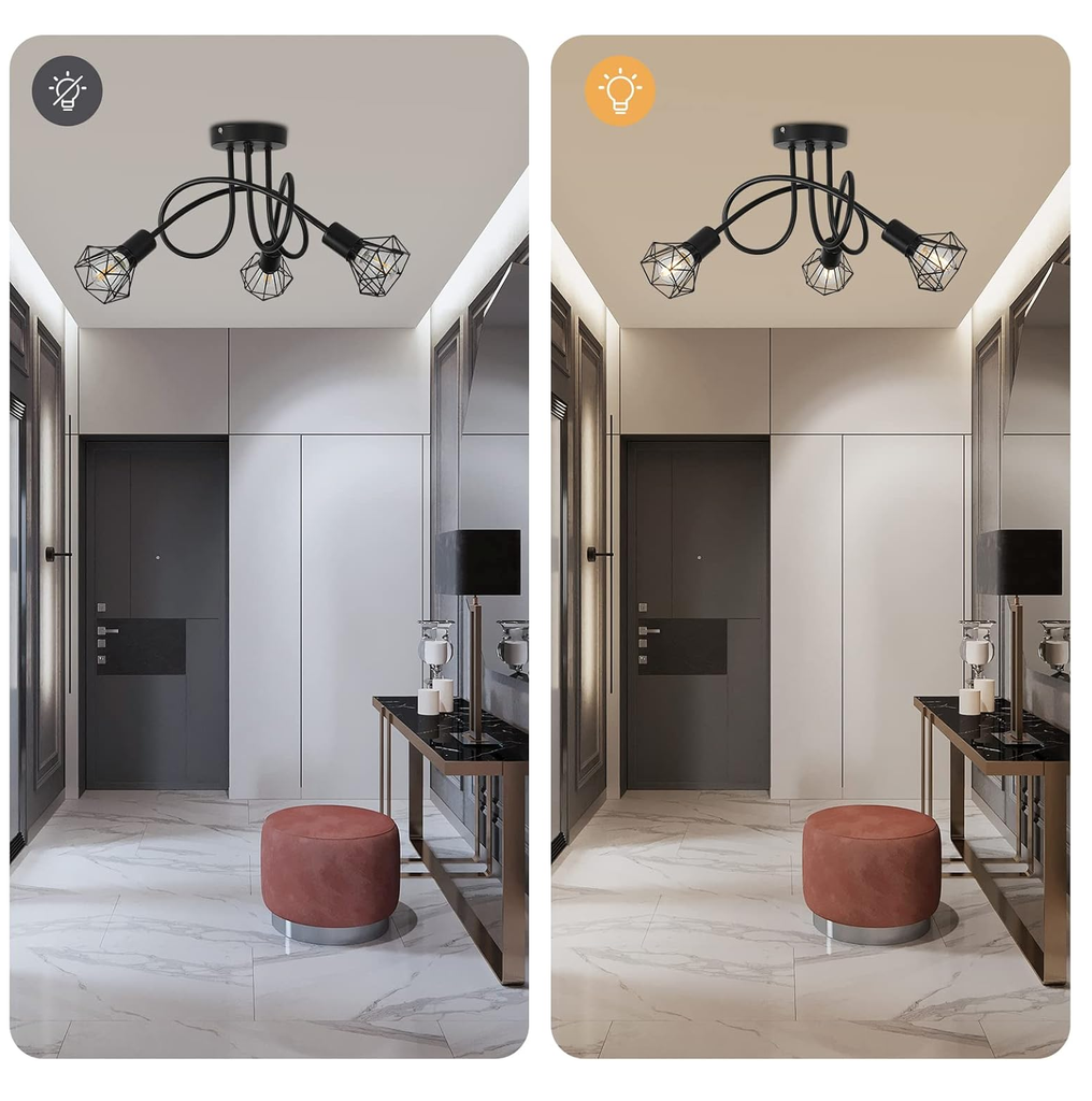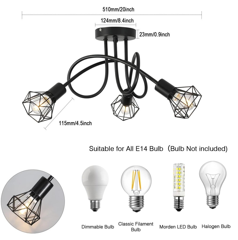 Our 3-light ceiling fixture combines industrial aesthetics with modern functionality. The black metal cage design adds a stylish touch while ensuring durability. With its standard E14 base compatibility, you can customize your lighting as per your preference. The easy installation process and wide application make it a perfect choice for home and commercial spaces.