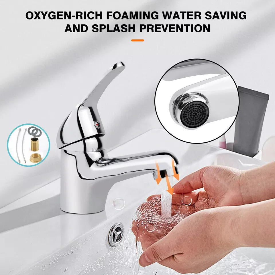 Upgrade your bathroom with the Chrome Cloakroom Basin Mixer Tap, a sleek and modern sink mono faucet designed for elegance and functionality. Made from high-quality solid brass with a polished chrome finish, this bathroom tap offers durability and corrosion resistance. The single lever design allows for easy control of water flow and temperature, making it a practical choice for any cloakroom or en-suite. Complete with fixings and a pop-up waste, installation is quick and hassle-free. Its water-saving aerator ensures efficient water usage while maintaining a smooth stream. Perfect for contemporary and traditional bathrooms alike, this chrome basin mixer tap combines style and performance effortlessly.