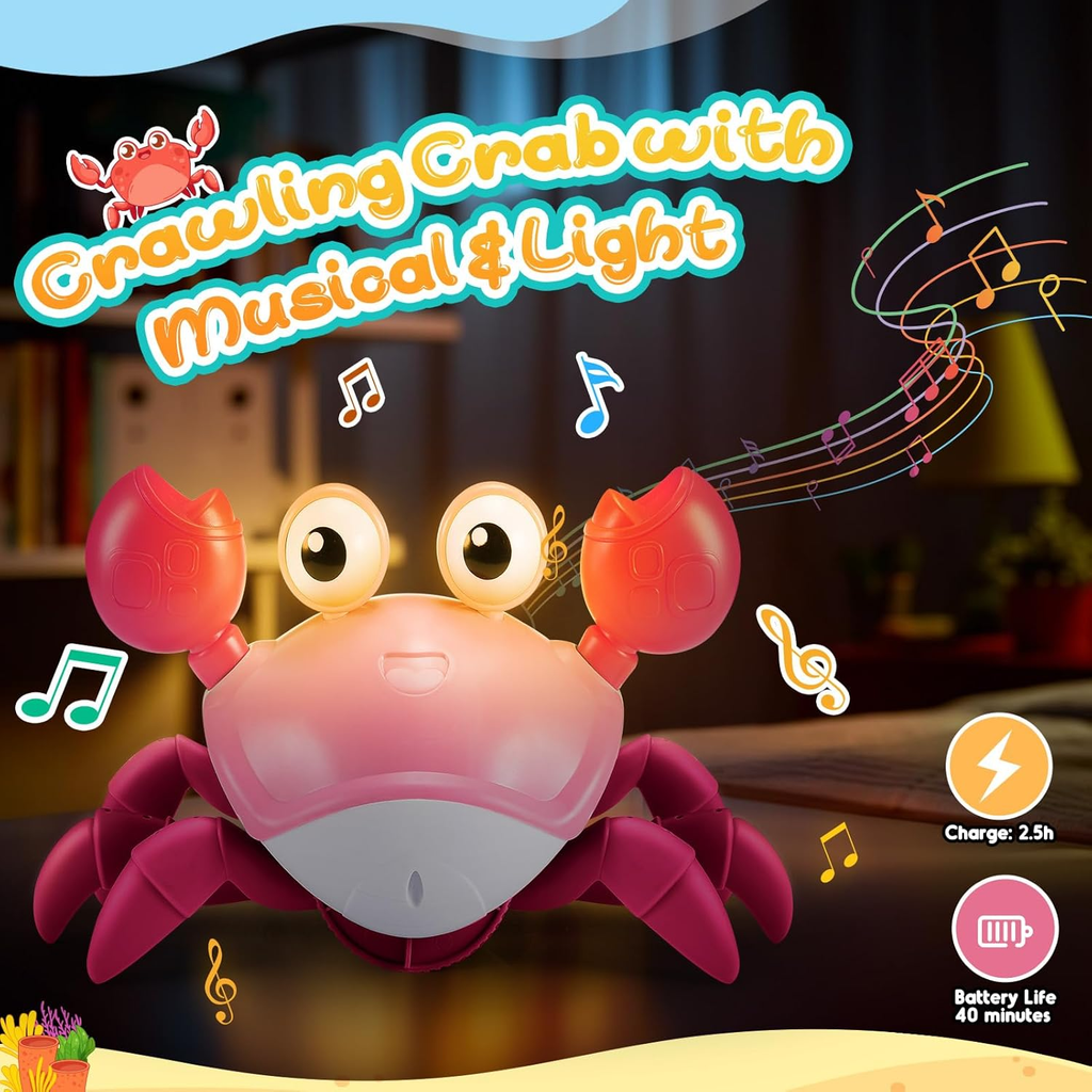 • Encourages Crawling & Movement – The crab scuttles sideways with automatic obstacle avoidance, inspiring babies to chase after it and strengthen their motor skills.