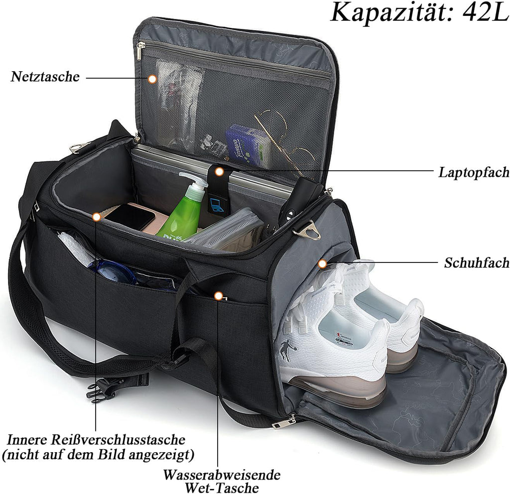 42L Waterproof Gym Duffel Bag with Shoe Compartment, Wet Pocket & Lock – Unisex