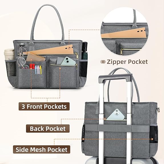 A standout feature of this tote is its insulated pocket, perfect for keeping drinks or snacks at the right temperature throughout the day. Multiple inner and outer pockets allow for organized storage of essentials like chargers, stationery, and personal items. The sleek design, reinforced straps, and secure zipper closure ensure comfort, durability, and safety for all your belongings, making it ideal for busy lifestyles.