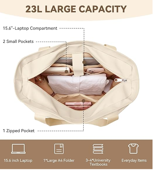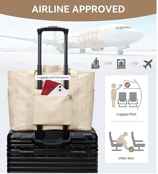 This stylish and practical Work Bag for Women is designed to keep you organized wherever you go — from the office to the gym, beach, or airport. Crafted from durable, water-resistant fabric, it features a spacious main compartment, padded 15.6-inch laptop sleeve, and multiple internal pockets to store daily essentials like notebooks, makeup, chargers, and documents. The secure top zipper keeps your items safe, while the trolley sleeve allows easy attachment to luggage handles, making it perfect for travel. Elegant yet functional, this tote bag combines fashion and utility, ensuring you stay organized and chic all day long.