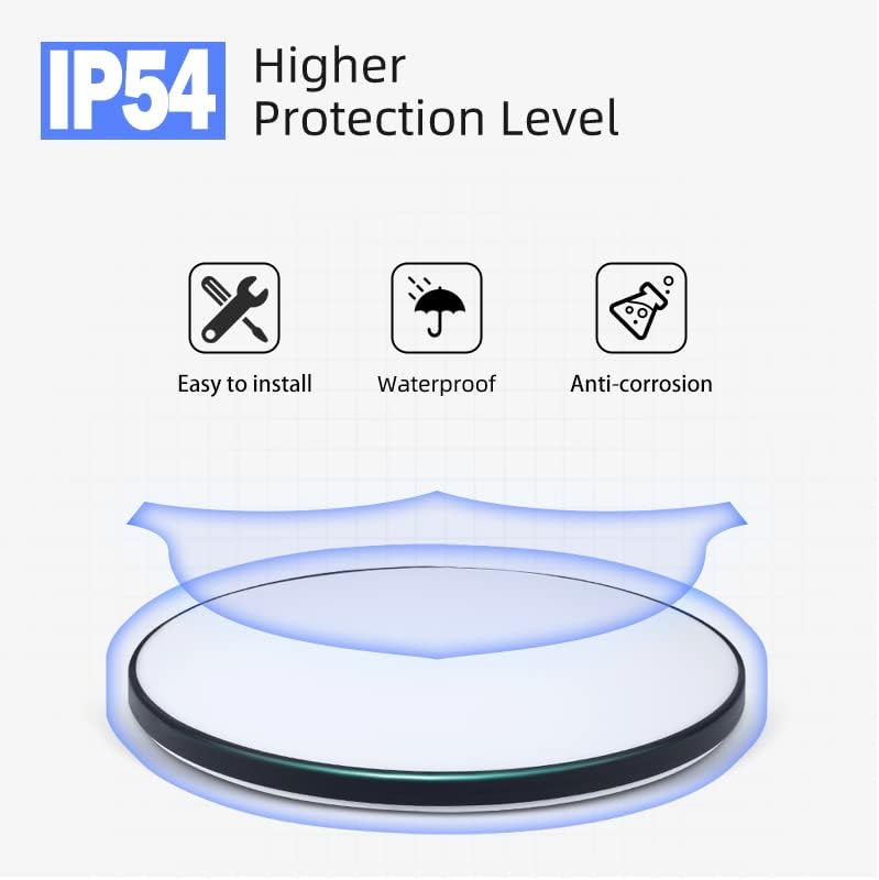 LED ceiling light round adopts a fully sealed design. IP54 waterproof quality. It can be safely installed in the kitchen, bathroom or outdoors. At the same time, the round ceiling light can prevent dust and mosquitoes. After a certain period of use, there are no black stains.