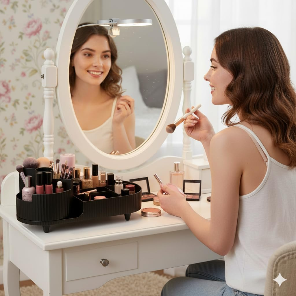 This rotating makeup organizer is perfect for both home and professional use, keeping all your beauty essentials tidy, visible, and within reach. Its compact footprint and versatile design make it suitable for bedrooms, bathrooms, dressers, and vanity tables.
