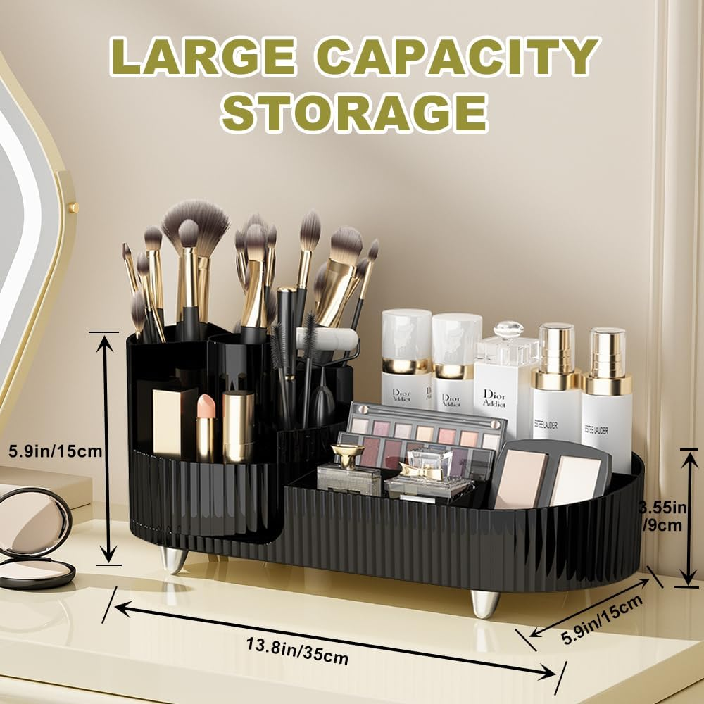 Keep your beauty essentials organized and easily accessible with this 360 Rotating Makeup Organizer, designed for convenience, functionality, and modern style. Featuring a 2-in-1 rotating compartment system, this organizer allows you to store and display your cosmetics, skincare products, and accessories in one compact, elegant solution.