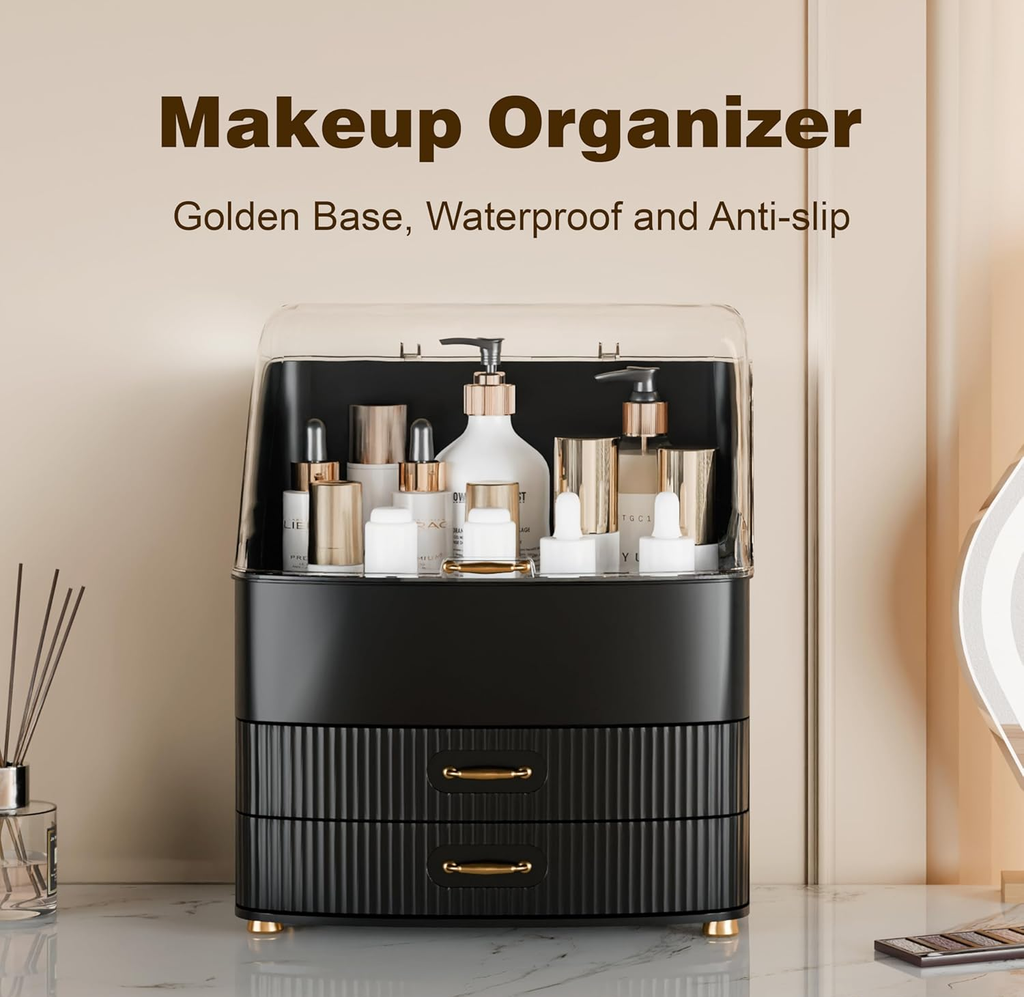 The dustproof and waterproof cover keeps your products protected from residue and moisture, ensuring a clean and hygienic environment for your daily skincare and makeup routine. Lightweight and easy to move, this organizer is as functional as it is elegant.