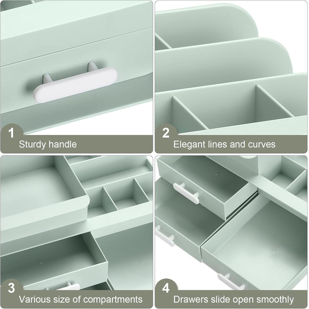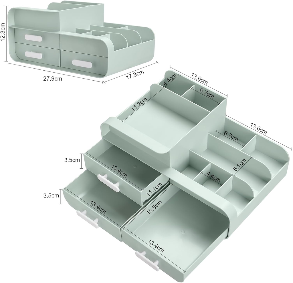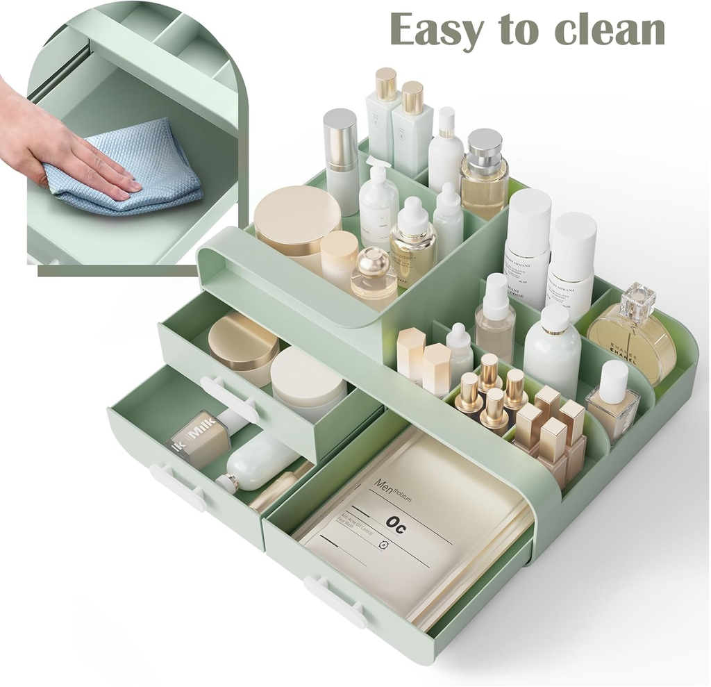 Elevate your beauty space with this Green Makeup Organizer with Drawers, a multifunctional and stylish solution for organizing cosmetics, skincare, and jewelry. Designed to bring order and elegance to your vanity, dresser, or bathroom countertop, this organizer combines generous storage capacity with a modern, luxurious design.