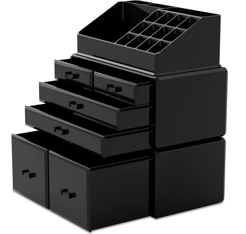 Whether you use it to display lipsticks, skincare bottles, jewelry, or brushes, this 6-Drawer Cosmetic Organizer Set provides lasting organization and a polished appearance for any environment.