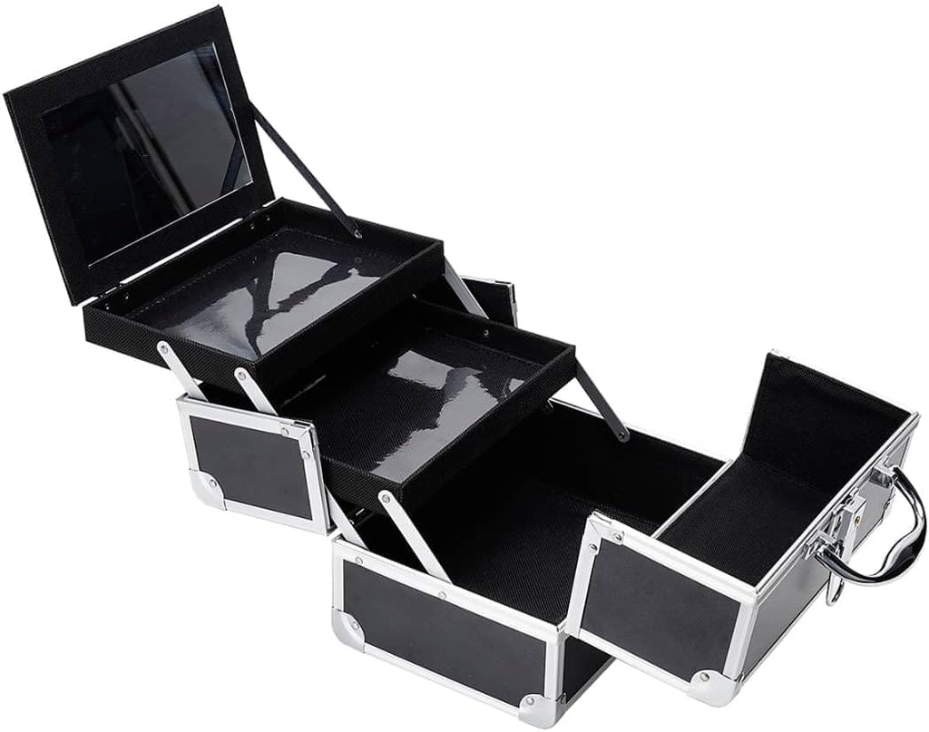 Makeup Vanity Travel Organizer Box with Mirror, Black Portable Beauty Cosmetic Case