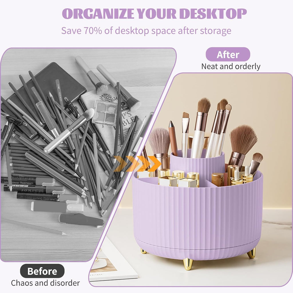 The smooth 360-degree rotation allows easy access from any angle, ensuring your essentials are always within reach. Whether you use it on your vanity, dressing table, office desk, or bathroom counter, this multifunctional organizer brings both beauty and function to your space.