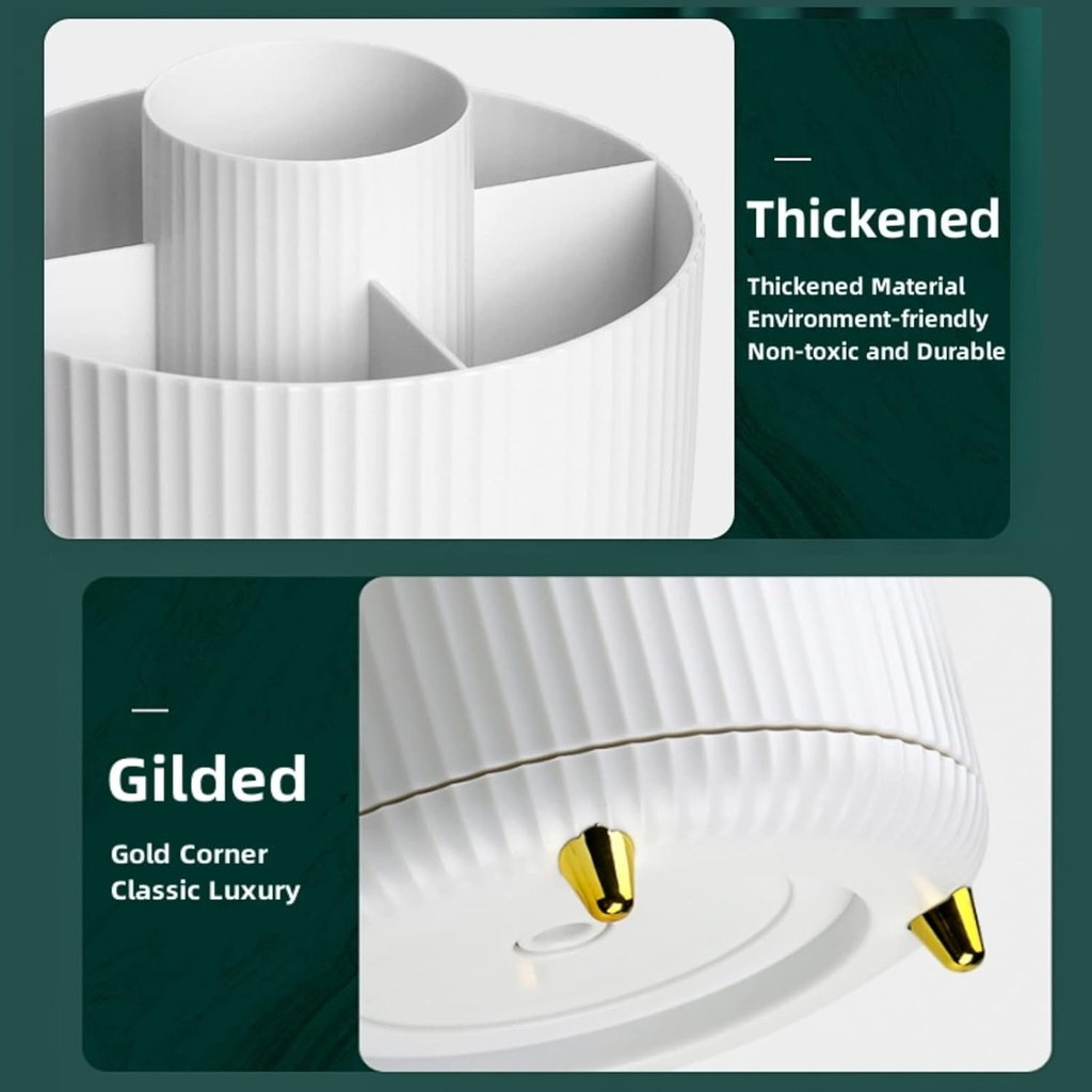 Crafted from high-quality, durable plastic, this organizer offers a sturdy, stylish, and modern design that suits any dressing table, bedroom, bathroom, or office. Its compact round layout makes it ideal for storing makeup brushes, skincare bottles, jewelry, stationery, or perfumes, helping you declutter while maintaining a neat and polished look.
