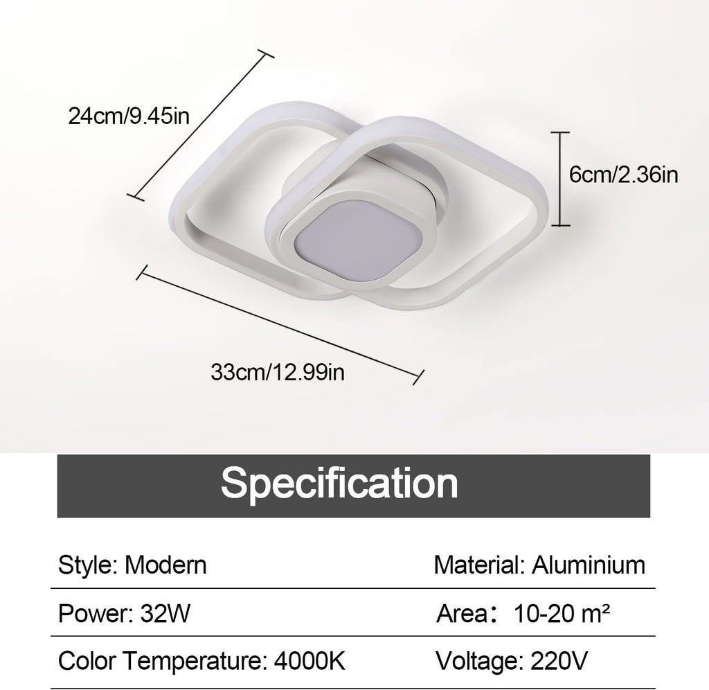 Upgrade your home’s lighting with the sleek and modern 32W LED Ceiling Light. Designed with a contemporary double square shape, this ceiling light adds a touch of elegance and functionality to any room. With a 4000K neutral white light, it provides a bright yet comfortable illumination that’s perfect for bedrooms, kitchens, living rooms, and hallways. The versatile design ensures that it blends seamlessly with modern and minimalist decor, offering both style and high-performance lighting.