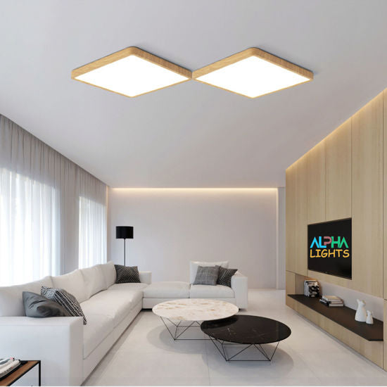 Our Wooden 20-Inch 48W LED Ceiling Light combines a natural wood frame with sleek modern styling to offer powerful and efficient lighting. Emitting a crisp cold white 6000K light, this ceiling fixture is perfect for brightening up your living room, dining space, or office with elegance and energy efficiency. Its low-profile square design allows for a seamless, flush-mounted finish that complements both modern and traditional interiors.