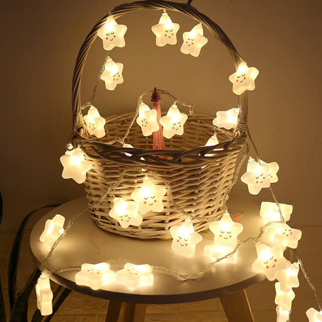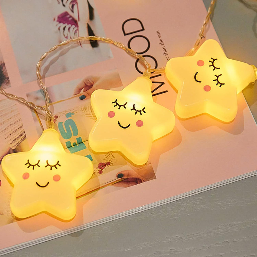 Bring a touch of fun and sparkle to your indoor decor with Funny Star Fairy Lights. With 20 star-shaped LEDs on a 3M string and USB power, these lights are perfect for Christmas decorations or cozy room lighting. The included remote control makes switching modes easy and convenient.