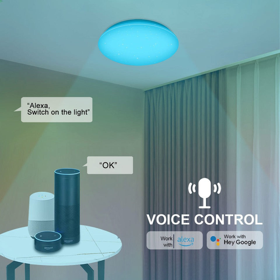 This smart RGB LED ceiling light with voice control and app connectivity is the perfect combination of technology, style, and energy efficiency for your home.