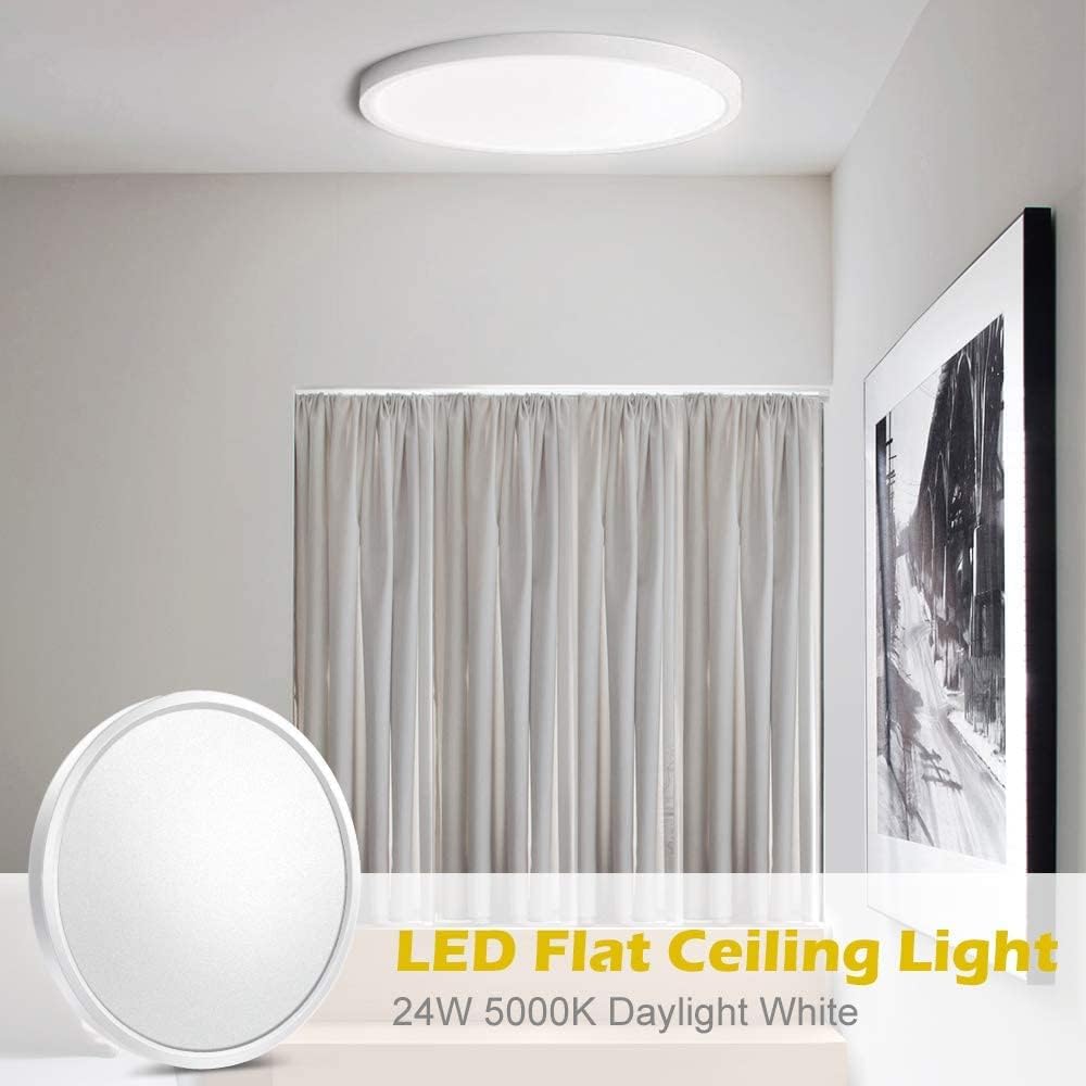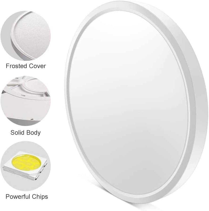 Enhance your home lighting with this 2-pack of 12-inch LED Flush Mount Ceiling Light Fixtures, designed with a sleek, ultra-thin profile at just 0.94 inches thick. Each light delivers 24W of energy-efficient brightness, equivalent to a traditional 240W bulb, with a stunning 3200 lumens output in crisp 5000K daylight white. Ideal for kitchens, stairwells, hallways, and bedrooms, these modern round lights provide even, flicker-free illumination that’s gentle on the eyes. The rust-proof white finish and flat design complement any decor. With a lifespan of over 10 years, these LED ceiling lights offer reliable performance and effortless elegance for everyday use.