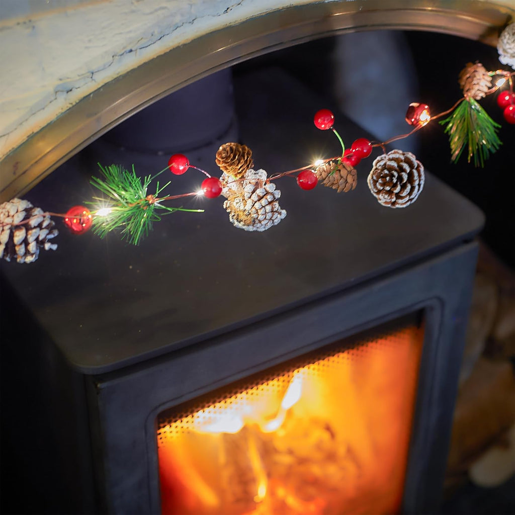Add a festive glow to your home with this 2M Pre-Lit Christmas Garland, featuring 20 LED lights and a lush, lifelike design of pine cones, berries, and greenery. Available in warm white or multi-coloured LED options, this elegant garland brings seasonal charm to your fireplace, staircase, banister, or dining table, enhancing your holiday décor with a touch of natural beauty.