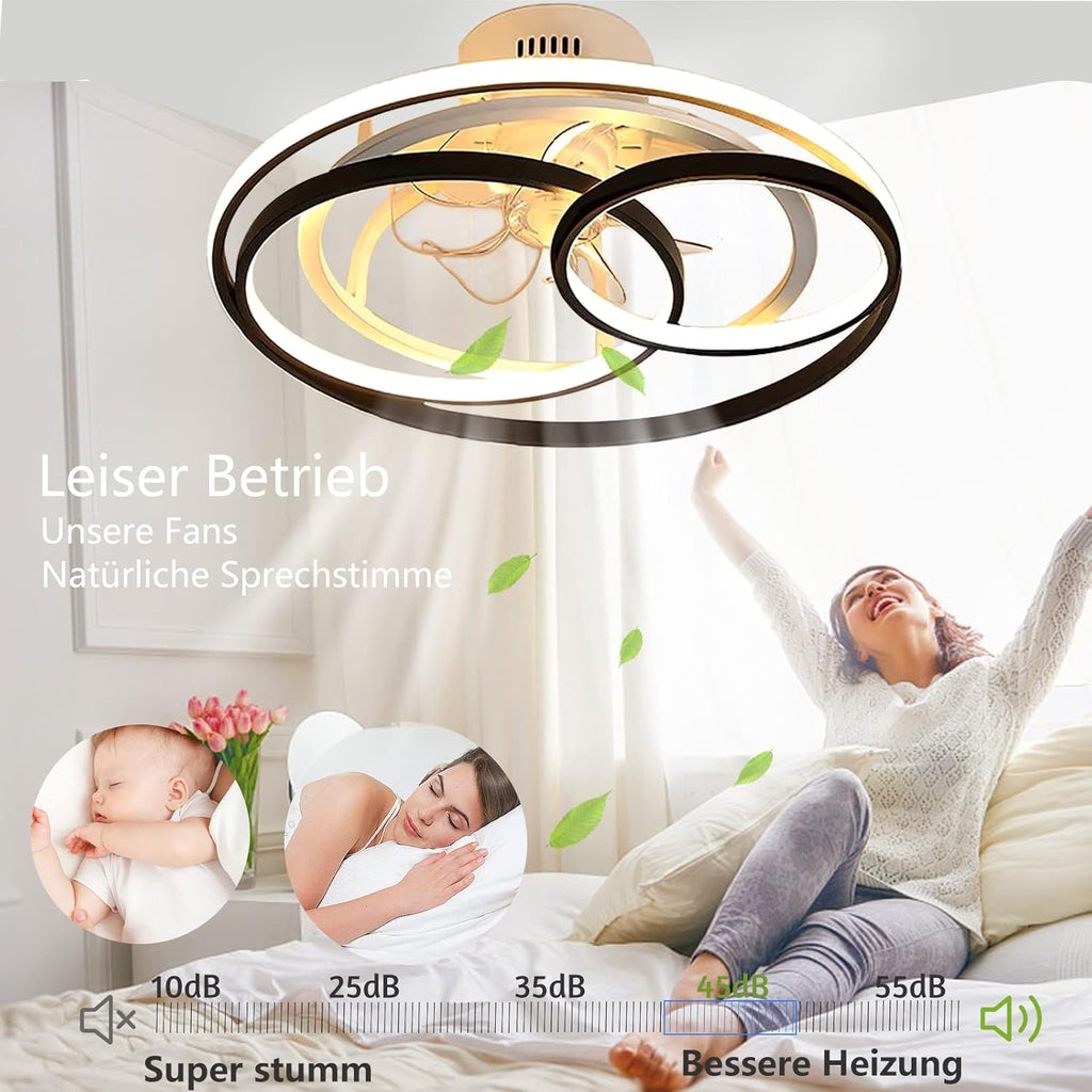 With its remote control and Bluetooth APP support, you can easily adjust 6 fan speeds, 3 color temperatures (3000K warm, 4000K neutral, 6000K cool), reverse the fan in winter, and set a 2-hour timer. The LED lens light source provides energy-saving, flicker-free, eye-friendly illumination, while the fan operates silently and efficiently for year-round comfort.