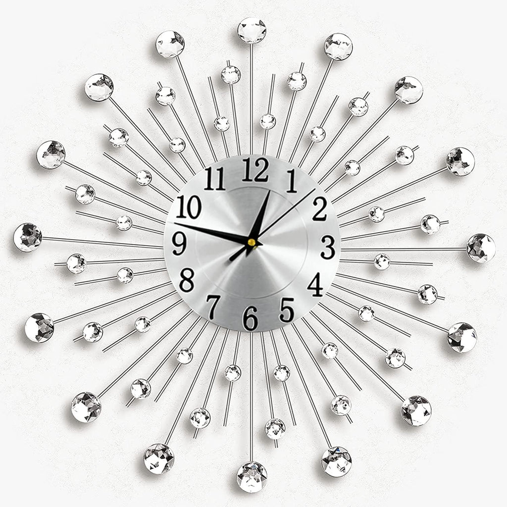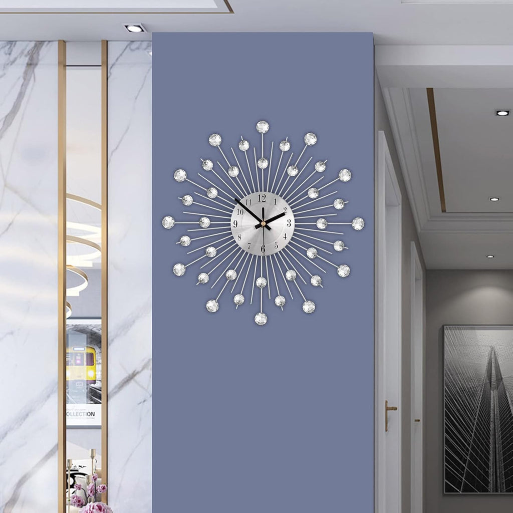 Add sparkle and elegance to your space with this Crystal Diamond Flower Wall Clock, a stunning blend of modern metal craftsmanship and luxurious crystal accents. Measuring 45cm, this clock features a sunflower-inspired design with shimmering diamond beads and a sleek aluminum alloy dial. Crafted from high-quality iron, frosted glass, and aluminum alloy, it’s durable, fade-resistant, and built to last. The silent quartz movement ensures accurate timekeeping without ticking noise — perfect for creating a peaceful environment in your living room, bedroom, or office. With its eye-catching crystal embellishments and stylish design, this wall clock doubles as both a functional timepiece and a statement piece of wall art.