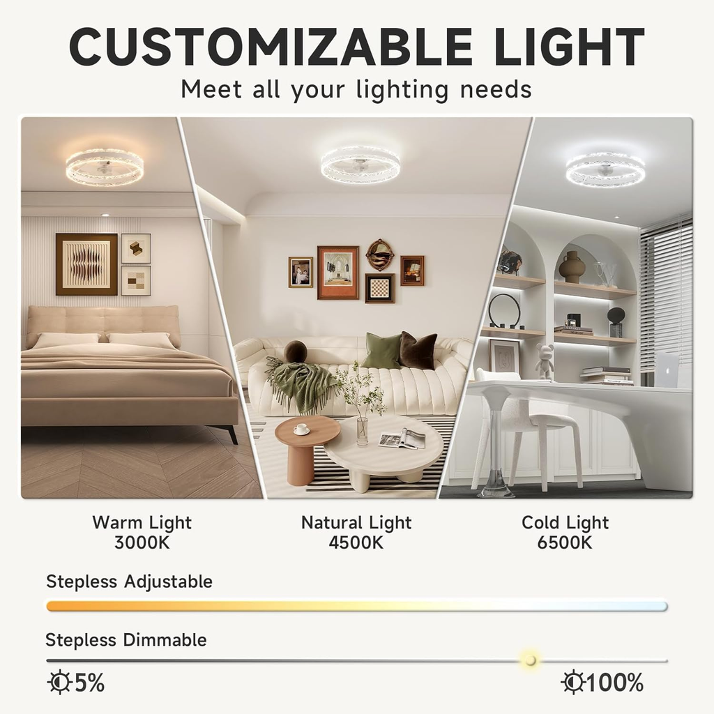Remote Control: Conveniently adjust fan speed, light settings, and timer functions from anywhere in the room.
