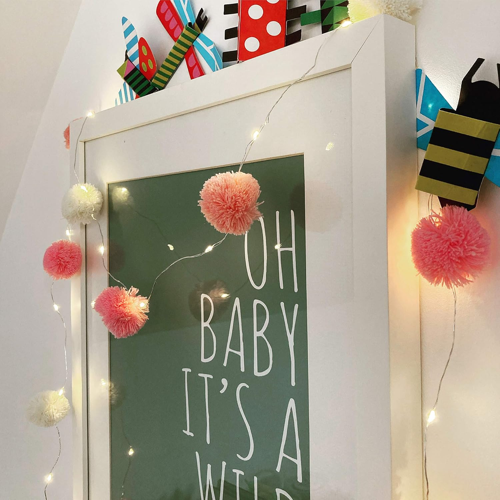 Add a playful touch to your décor with these 2m Pom Pom LED Fairy String Lights. Featuring soft, multicolor pom-poms and battery-powered LEDs, they’re perfect for bedrooms, parties, and cozy indoor settings. These lights create a fun and festive glow, making them ideal for kids' rooms and celebratory decor.