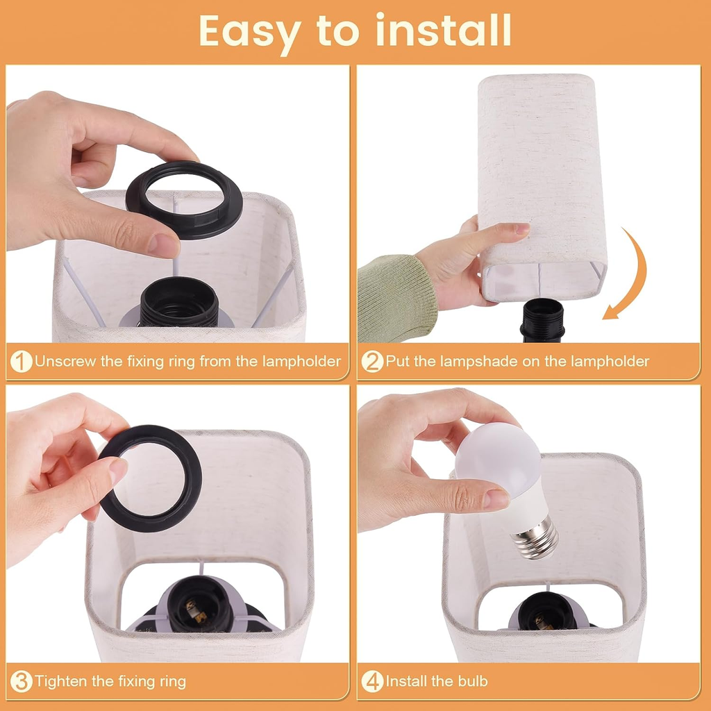 Warm Ambiance: Beige linen shade creates soft, relaxing light.