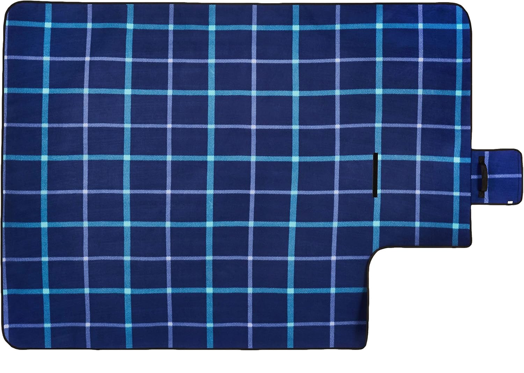 Crafted with a soft, cozy surface in a blue and white pattern, it offers a comfortable place to sit or lie down, while the durable waterproof backing keeps you dry and protected from damp grass, sand, or ground moisture. Lightweight and portable, it folds neatly into a compact size with a secure Velcro closure and an integrated carrying handle, making it easy to transport anywhere.