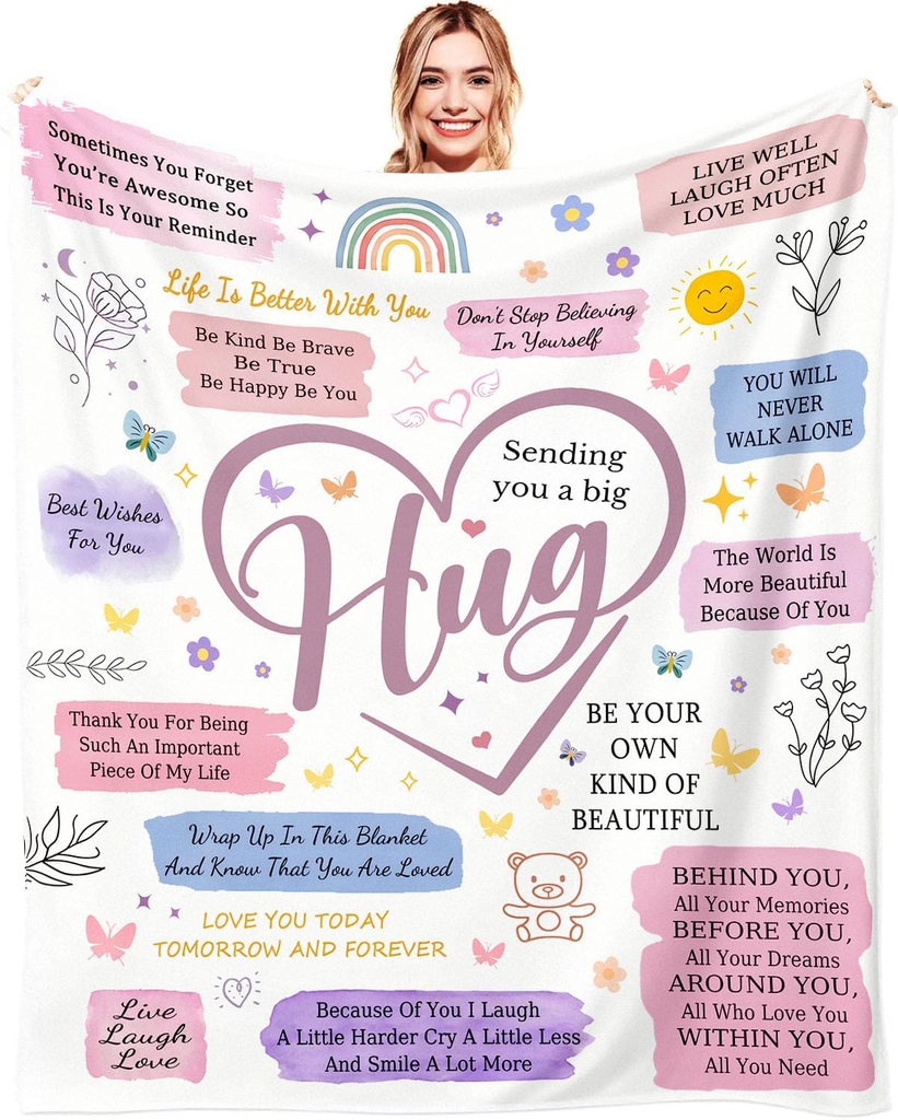 Designed with heartfelt sentiment, this blanket makes an ideal cheer-up, get well soon, or thinking of you gift for your bestie, sister, girlfriend, or loved one. Its softness creates the feeling of a warm hug, reminding them of your support and care every time they wrap up in it.