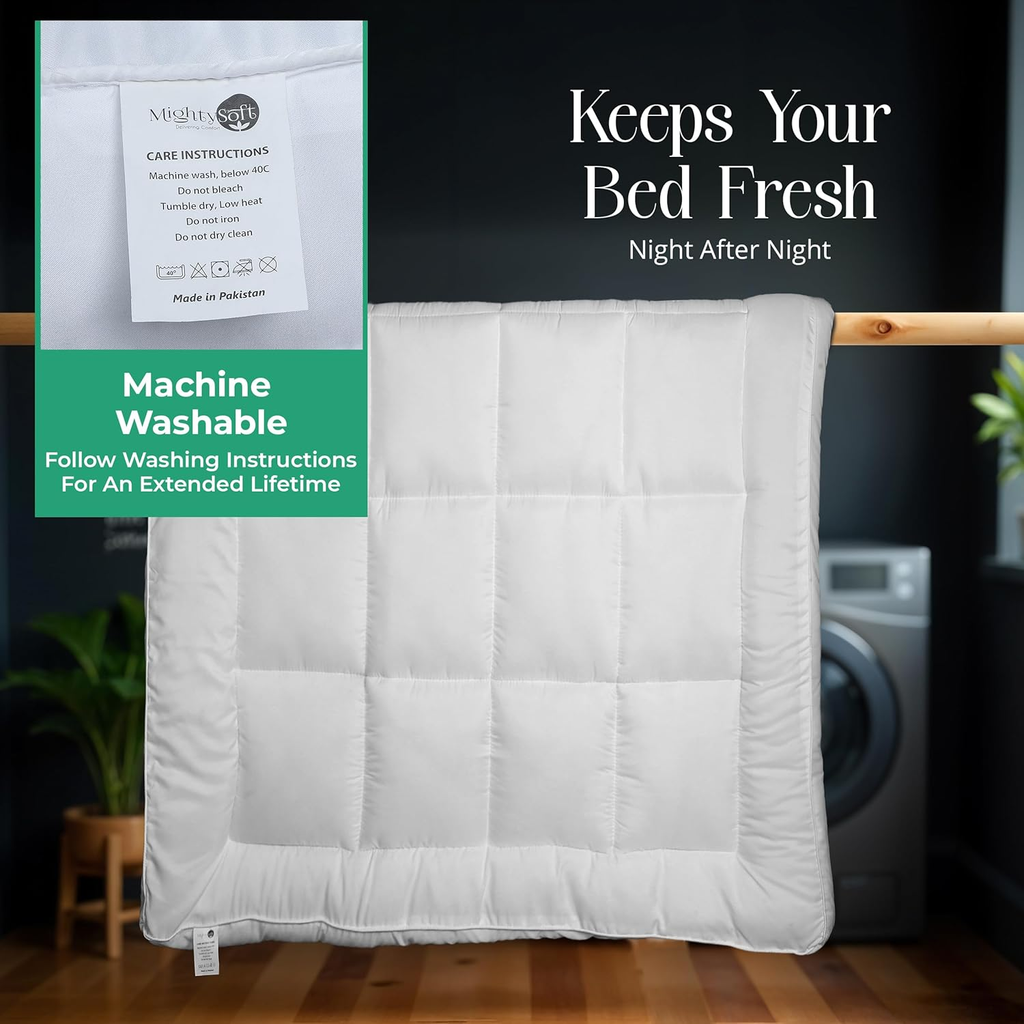 Transform your sleeping experience with this luxurious 10cm thick double bed mattress topper. Designed for ultimate comfort, it features ultra-soft microfiber filling and a quilted surface that enhances breathability and support. The elastic corner straps ensure a snug fit on all mattress types, preventing movement throughout the night. Hypoallergenic and skin-friendly, this topper provides extra cushioning for pressure relief, promoting restful and refreshing sleep. Ideal for revitalising old mattresses or adding an extra layer of plush softness to your bed.