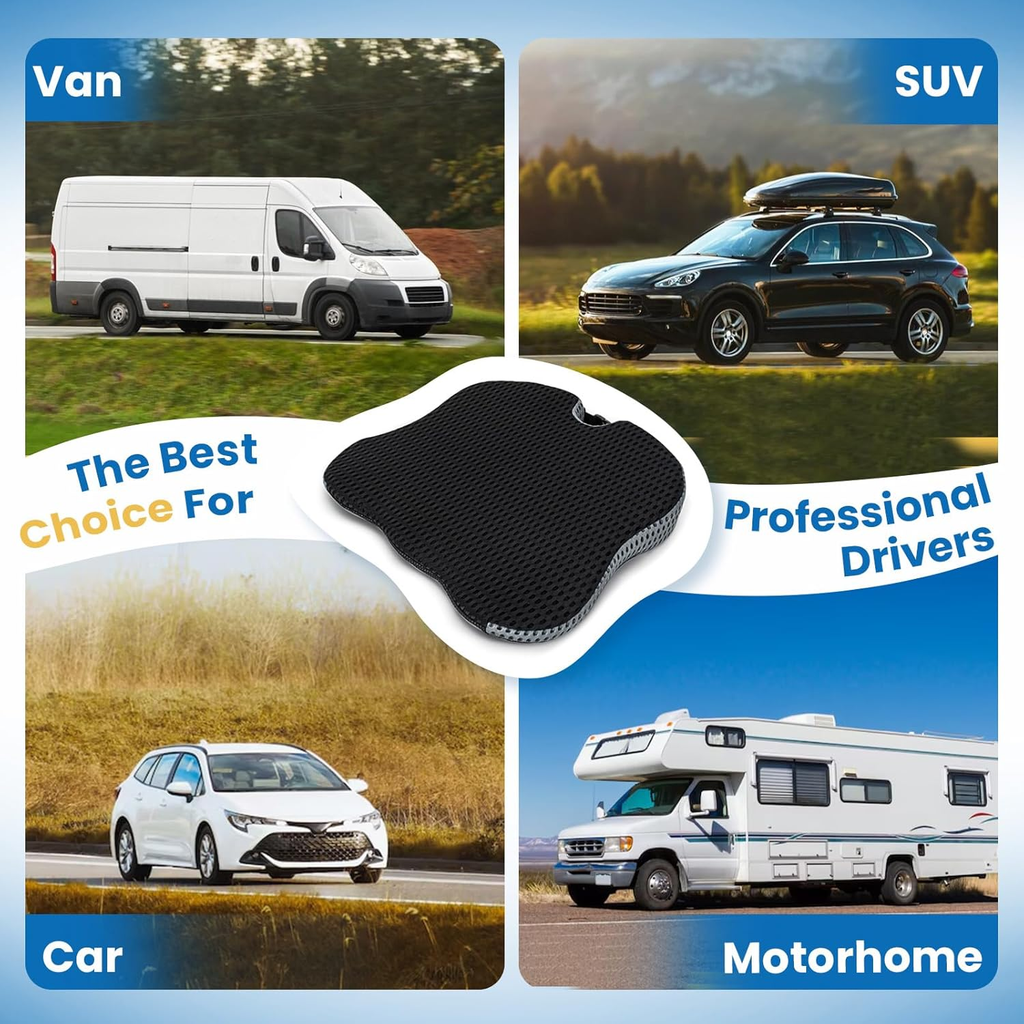 Crafted from high-density memory foam, this cushion molds to your body’s contours for customized support, while the breathable mesh cover keeps you cool and comfortable even on hot days. Lightweight and portable, it’s perfect for cars, trucks, SUVs, and even office chairs.
