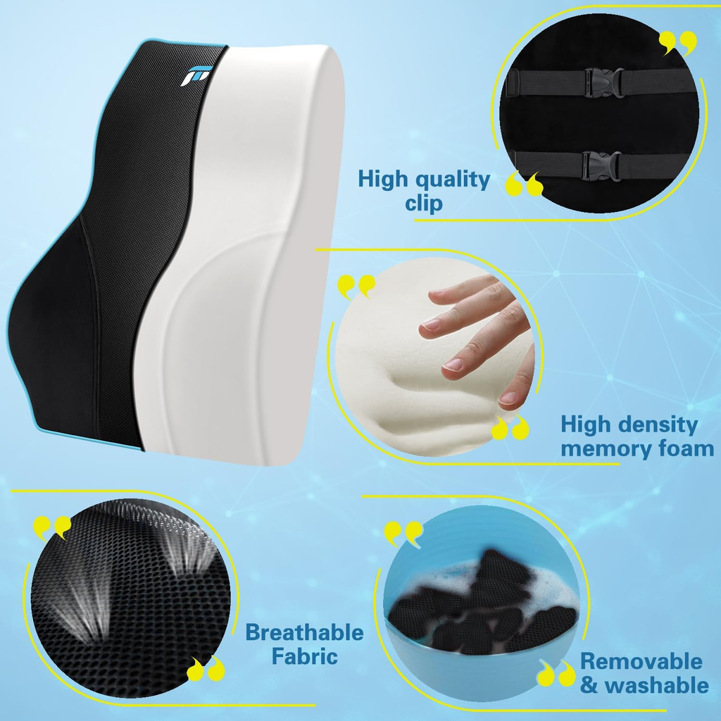Experience all-day comfort and proper posture with this Memory Foam Lumbar Support Cushion, designed to relieve lower back pain and promote a healthy sitting position.
