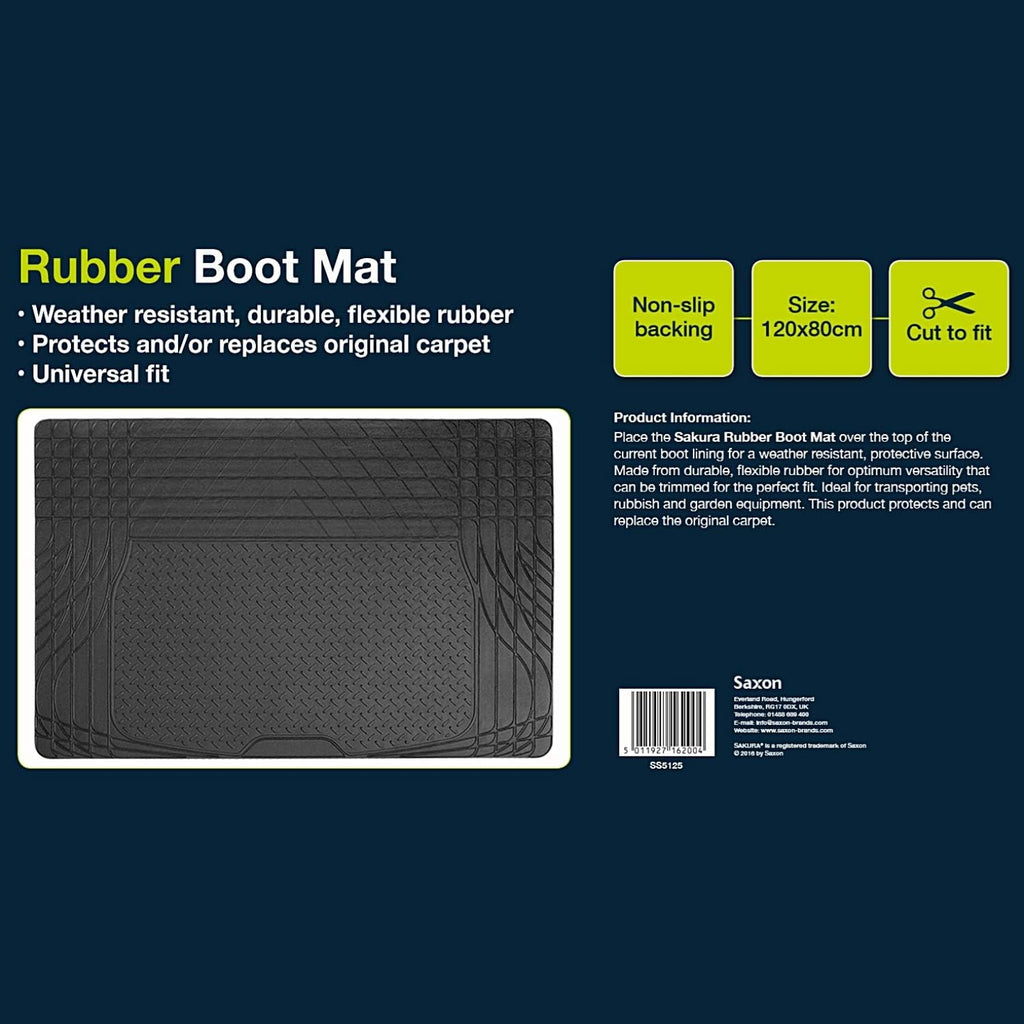 Heavy-duty rubber boot mat keeps your trunk area protected from dirt, mud, and liquids.
