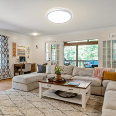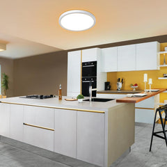 Our 9 Inch White 24W LED Ceiling Light is a sleek, thin round flat ceiling light designed to brighten any space. It features a color temperature switch controlled via a standard wall switch — toggle the switch to cycle between Cool White, Warm White, and Natural White light settings. This flush mount LED light is perfect for modern interiors, ideal for kitchens, hallways, bedrooms, or bathrooms.