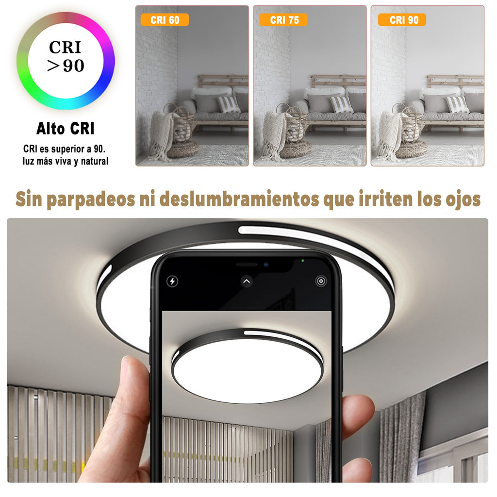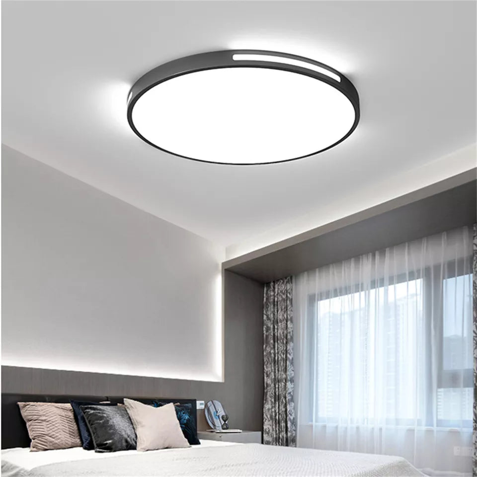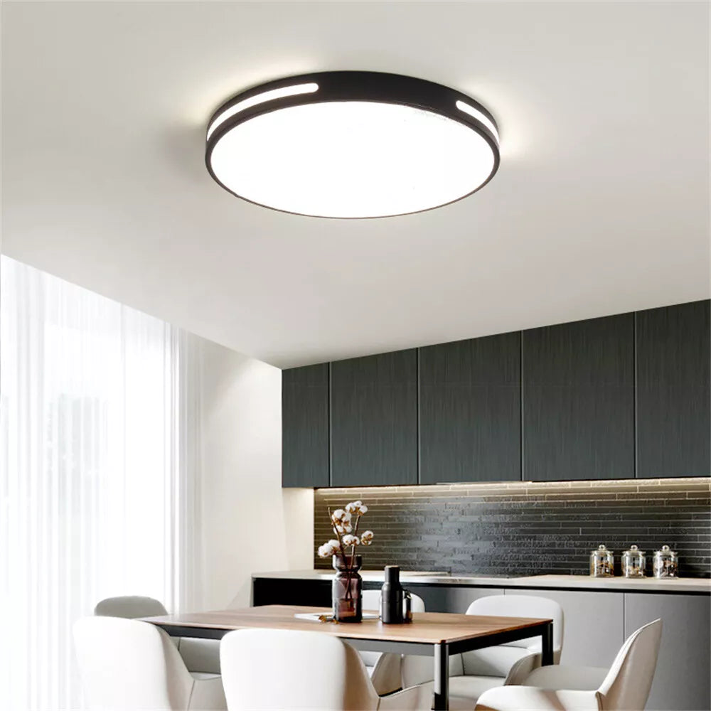 Transform your living space with the sleek and energy-efficient 27W Dimmable Modern LED Ceiling Light. Featuring a slim and elegant design, this black LED flush mount light is perfect for homes with low ceilings or sloped roofs, seamlessly blending into any interior. Enjoy optimal illumination with built-in LEDs that save energy while providing consistent brightness without dark spots.
