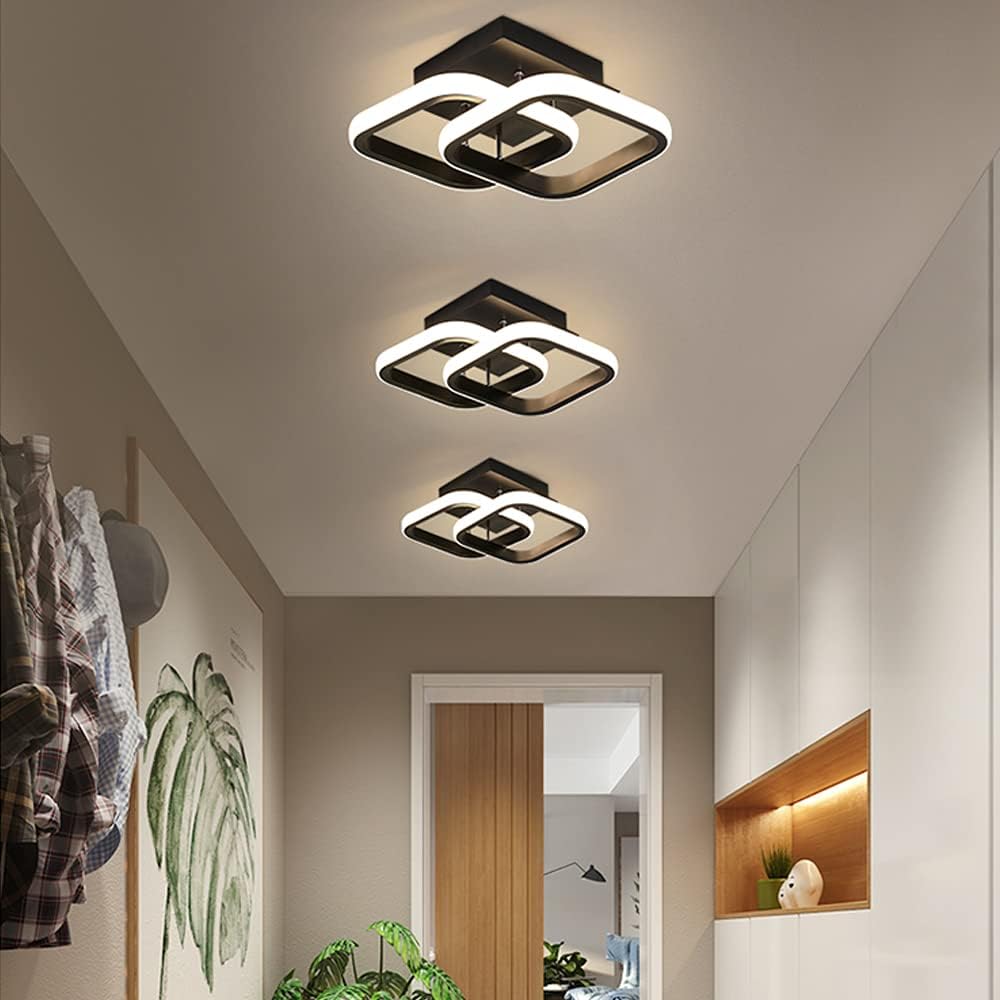 Introducing the Modern Square LED Ceiling Light, an elegant lighting solution designed to enhance the ambiance of your hallway, entrance, or bedroom. With a sleek black aluminum finish and minimalist square design, this ceiling light adds a contemporary touch to any space. Unlike oversized ceiling lights that can overpower a small room or underperforming fixtures that fail to provide adequate lighting, this lamp strikes the perfect balance between size and brightness, making it ideal for both compact spaces and larger rooms needing cozy illumination.