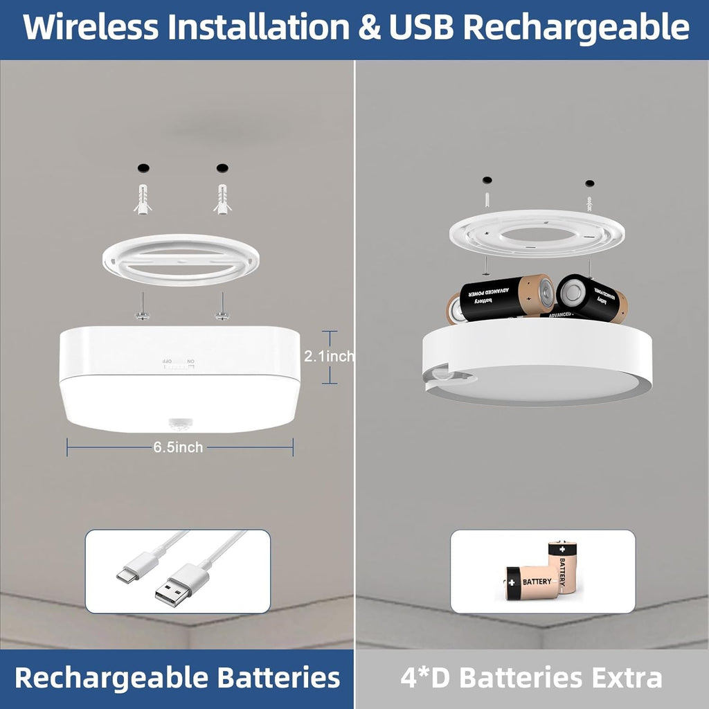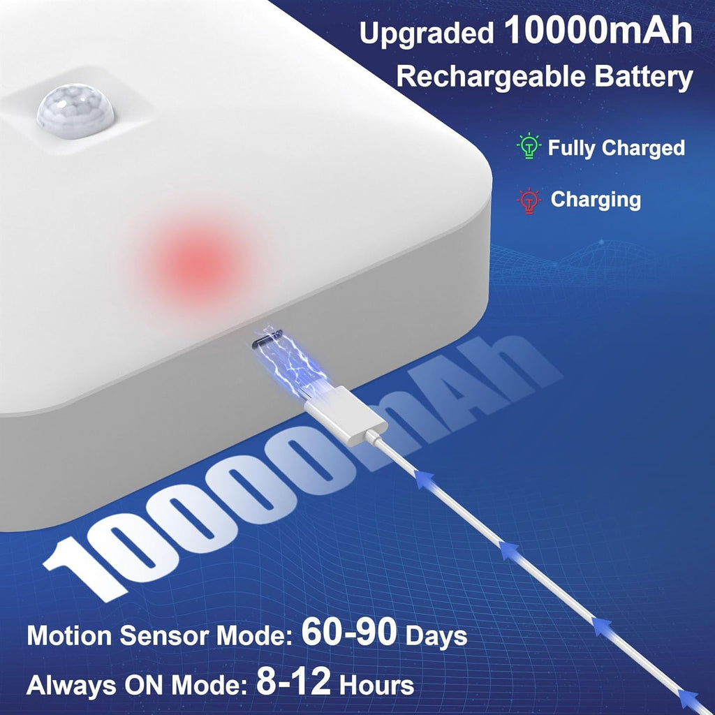 Illuminate any space effortlessly with this powerful 10000mAh rechargeable motion sensor ceiling light. Designed for areas without wiring, it provides bright 500LM daylight and smart motion activation for convenience, safety, and energy efficiency. Whether you're lighting up a bathroom, shed, porch, or hallway, this waterproof and wireless ceiling lamp offers a hassle-free, long-lasting solution.