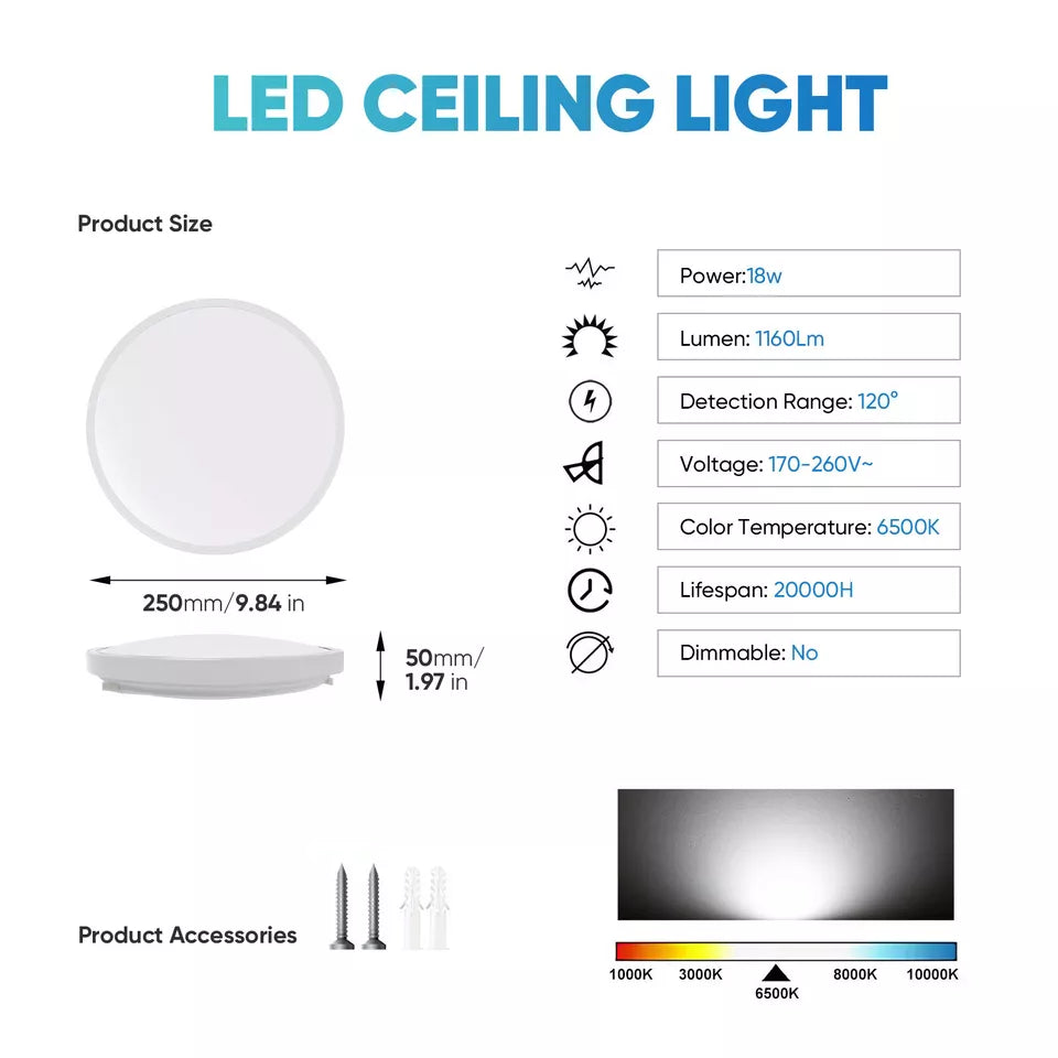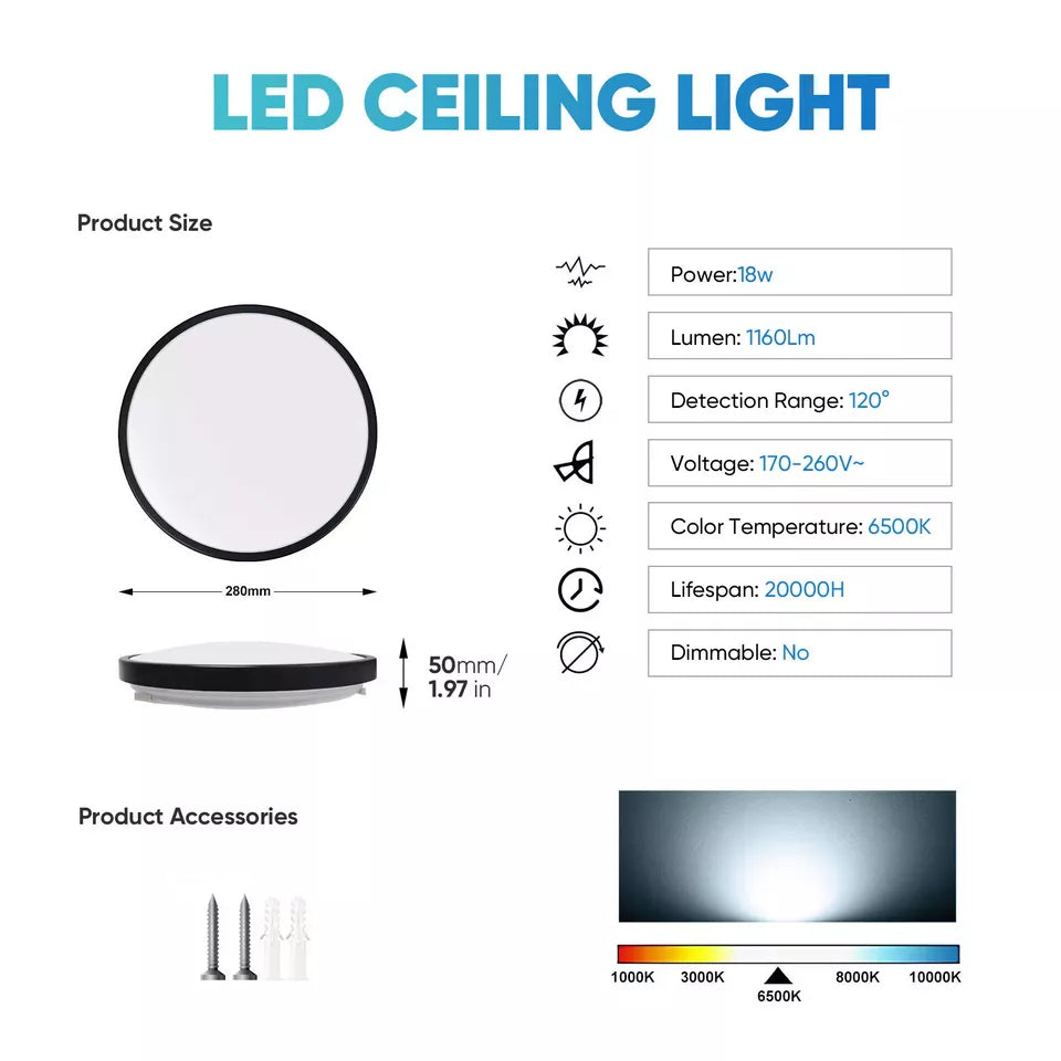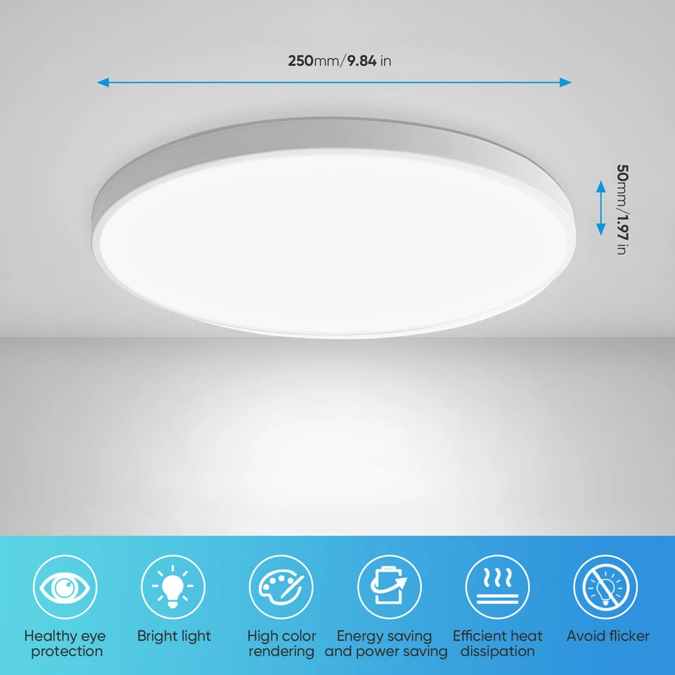 Illuminate your interiors with this modern Round LED Ceiling Light Panel Downlight, designed to deliver powerful, efficient lighting in a sleek, compact form. With a contemporary black or white finish, IP54 waterproof rating, and energy-saving LED technology, this ceiling lamp is perfect for various rooms including bathrooms, kitchens, bedrooms, and living areas. Its bright cold white light ensures clear visibility and a fresh ambiance in any space.