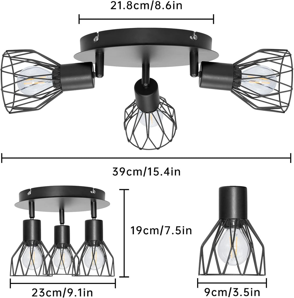 Enhance the ambiance of your home with this stylish and versatile 3-way adjustable ceiling spotlight. Featuring a matte black metal wire cage design, this ceiling light offers flexibility with its 350-degree rotation and 90-degree tilt, making it perfect for various indoor lighting needs. Whether in the kitchen, hallway, or living room, this spotlight allows you to direct light precisely where you need it. With a durable metal construction and modern industrial aesthetics, it's a great addition to any space.