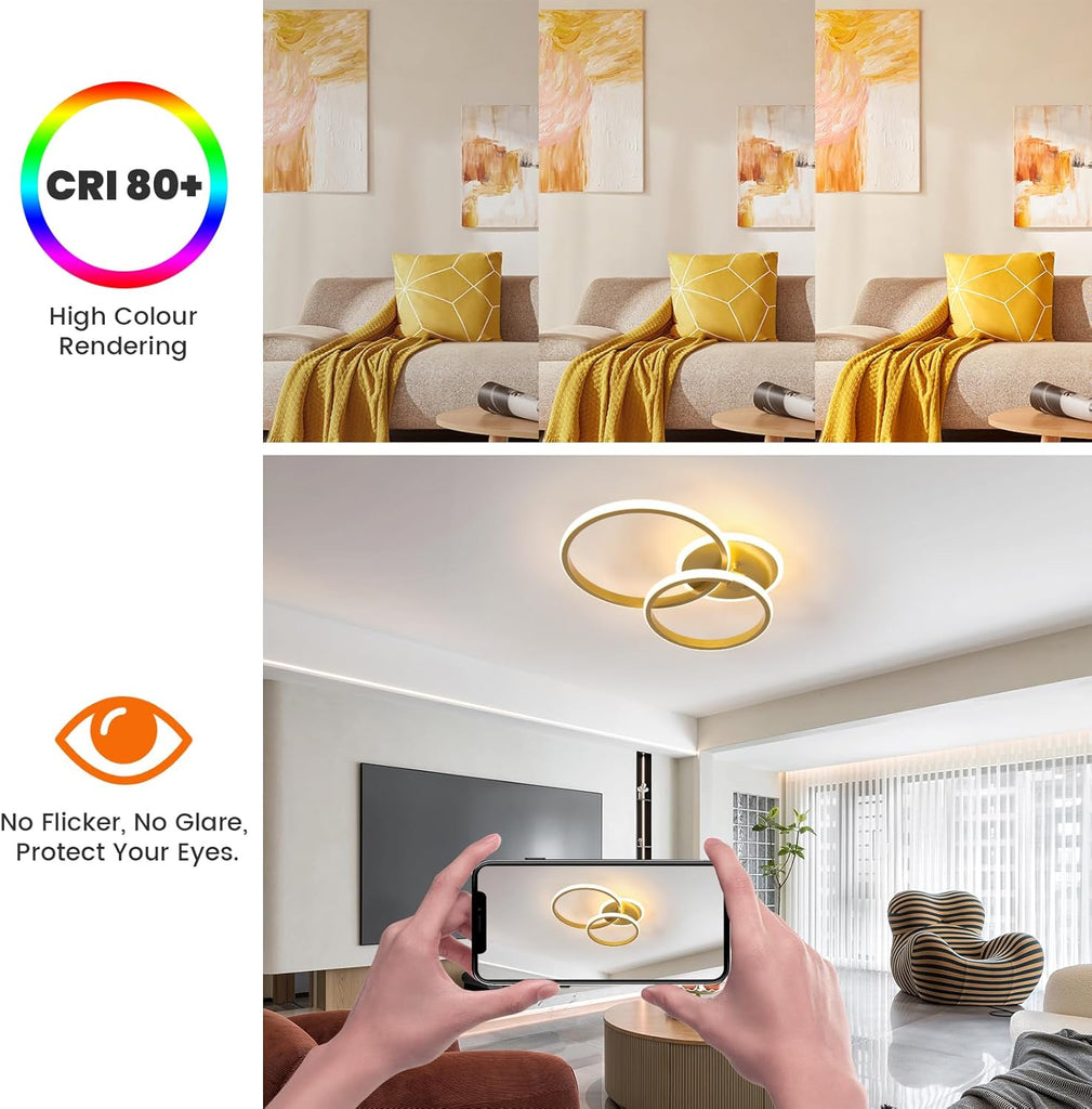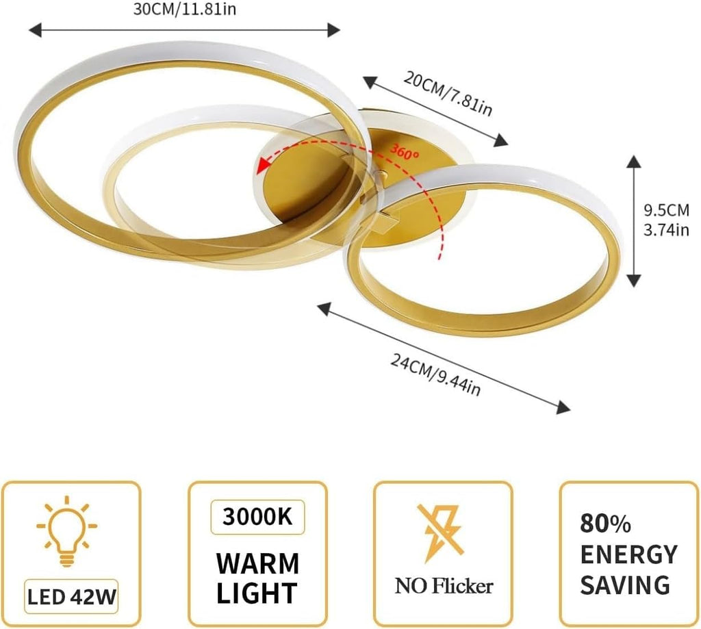 Illuminate your home with elegance and efficiency using this Modern LED Ceiling Lamp. Featuring a gold round chandelier design, this fixture provides bright 4700LM illumination while maintaining a stylish look. With 42W energy-saving LEDs and 3000K warm white light, it creates a cozy and inviting atmosphere, perfect for your living room, bedroom, dining room, or office.
