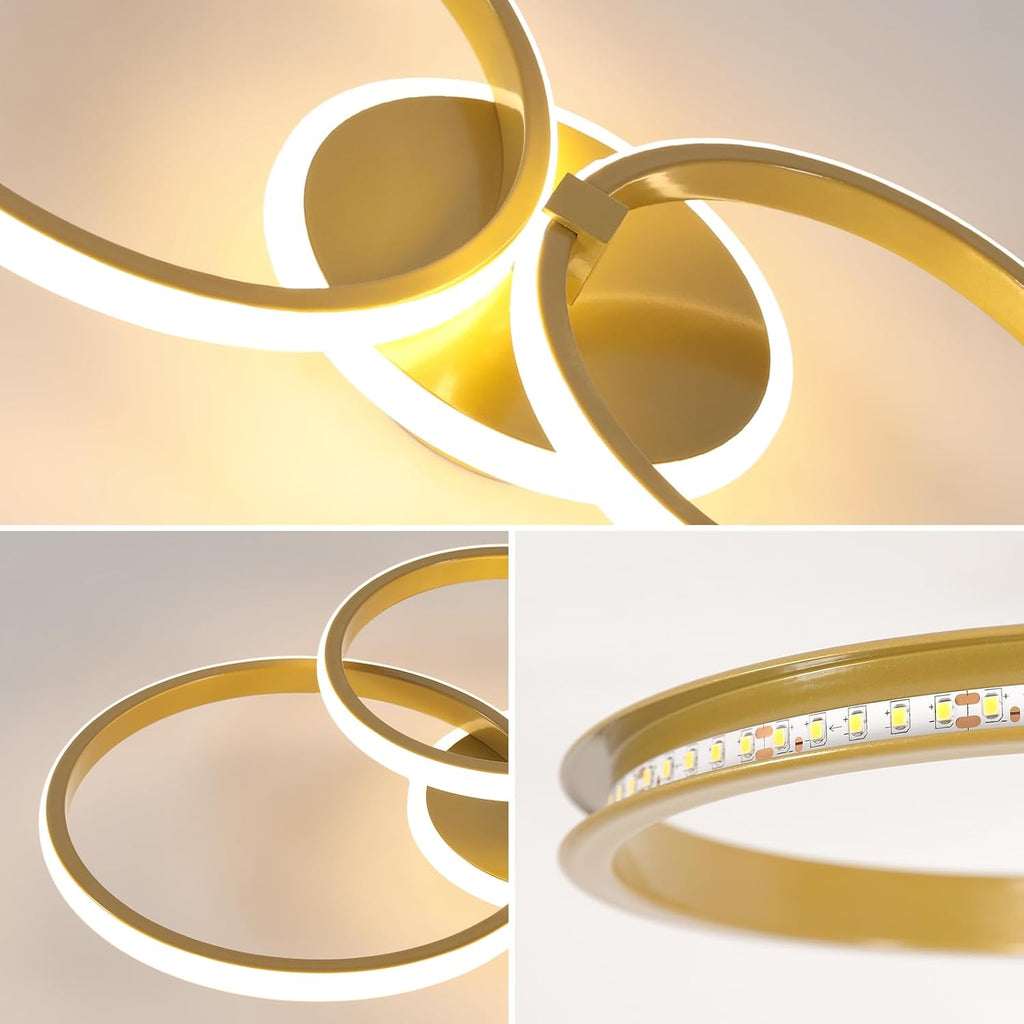 Modern LED Ceiling Lamp, 42W 4700LM Gold Round Chandelier Ceiling Light for Living Room, Bedroom, Dining Room, Office (3000K Warm White)