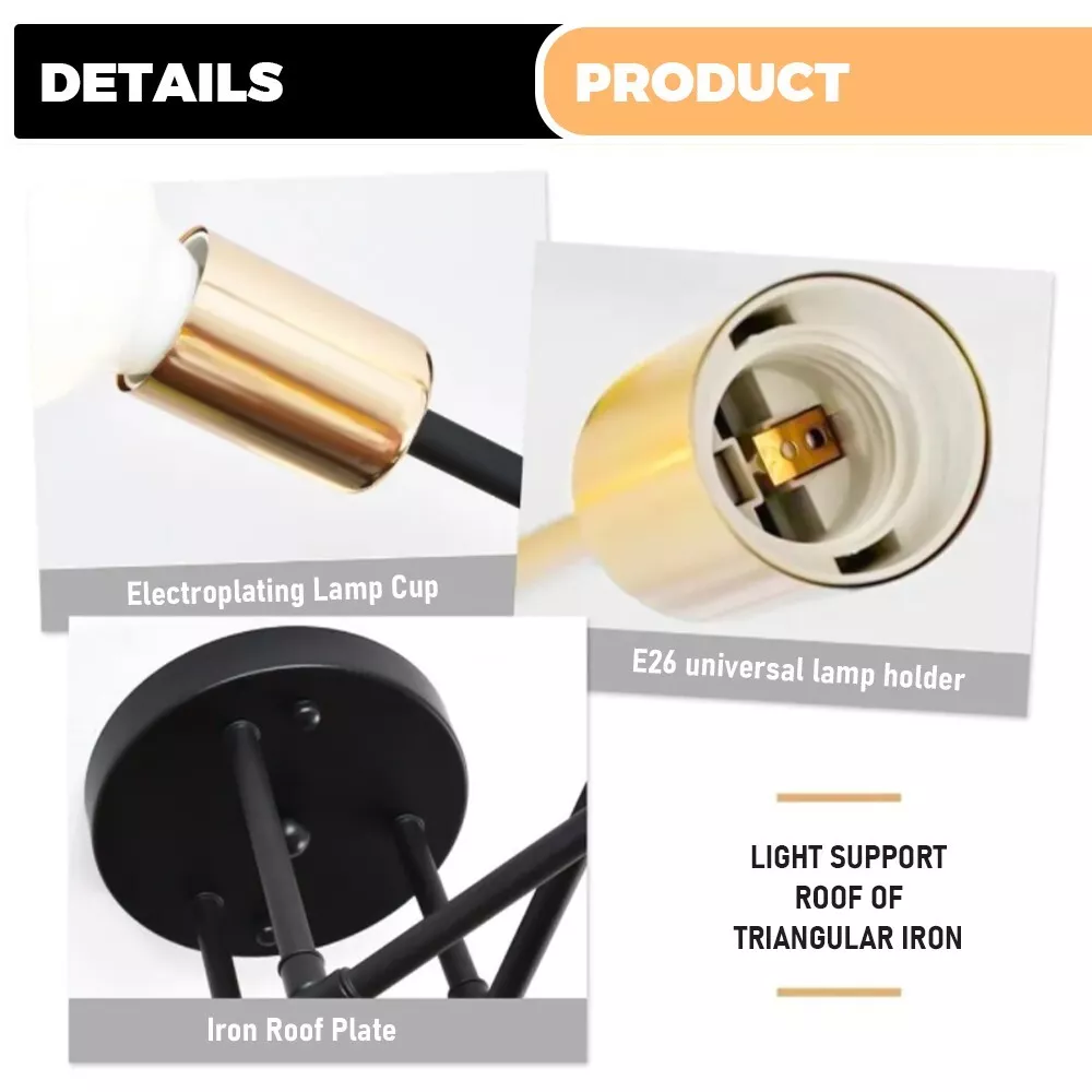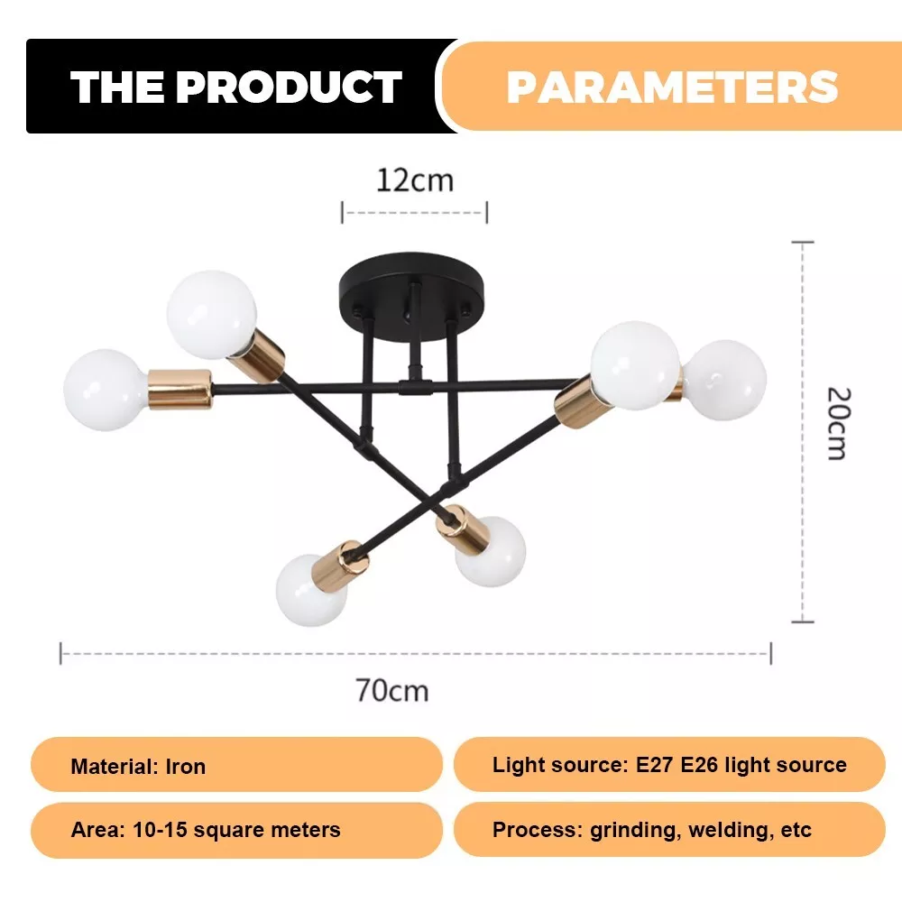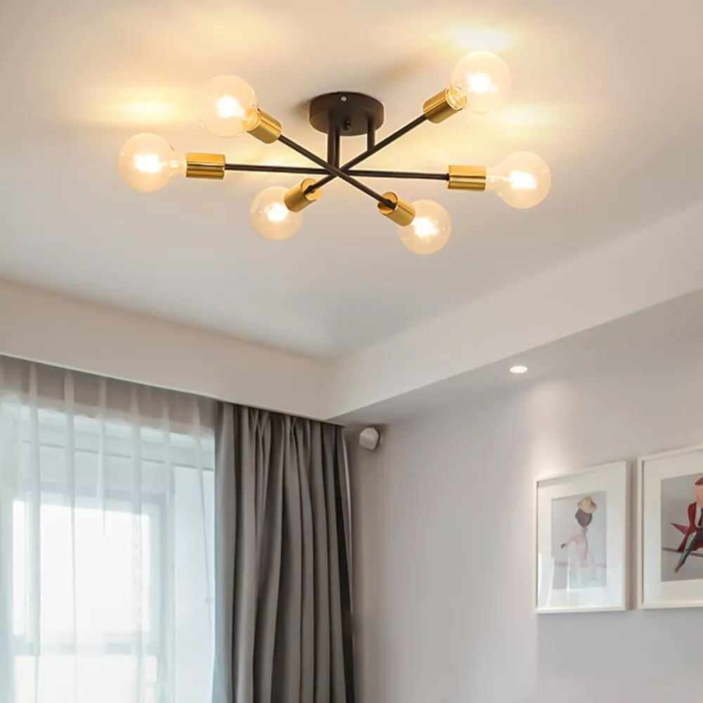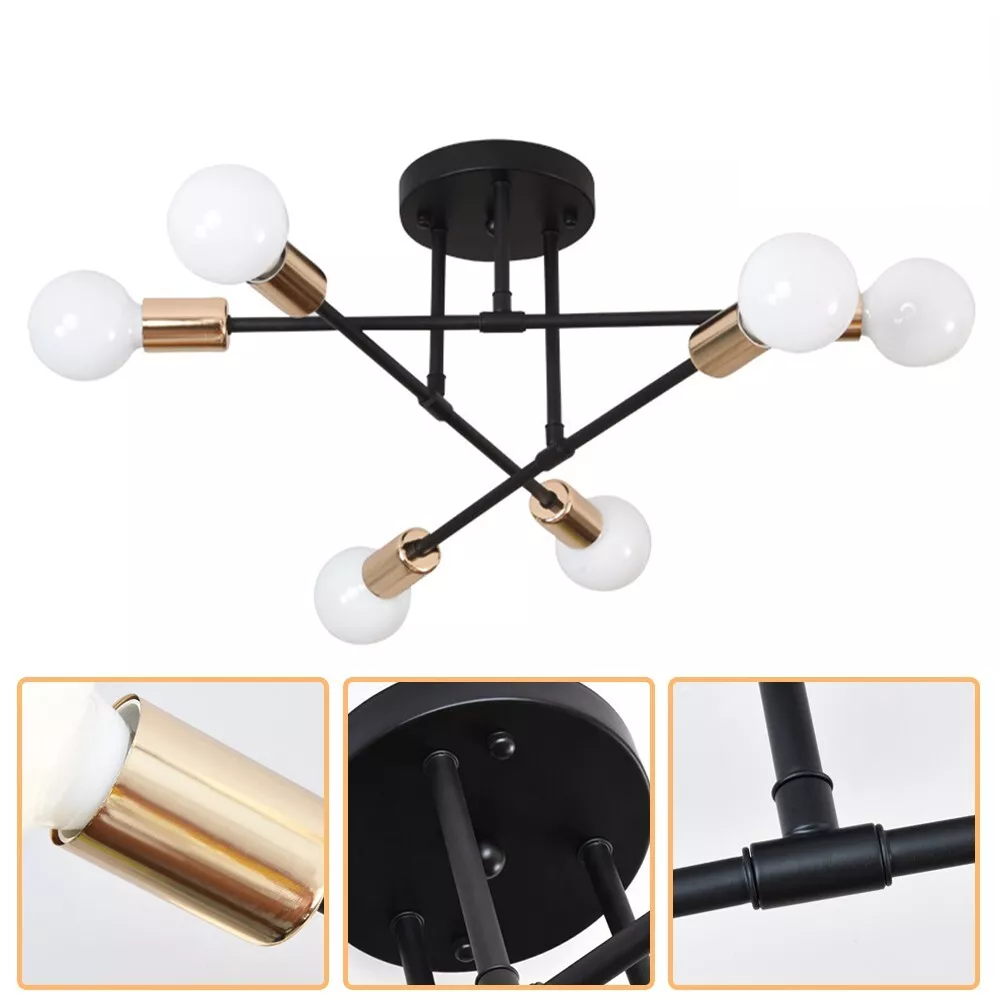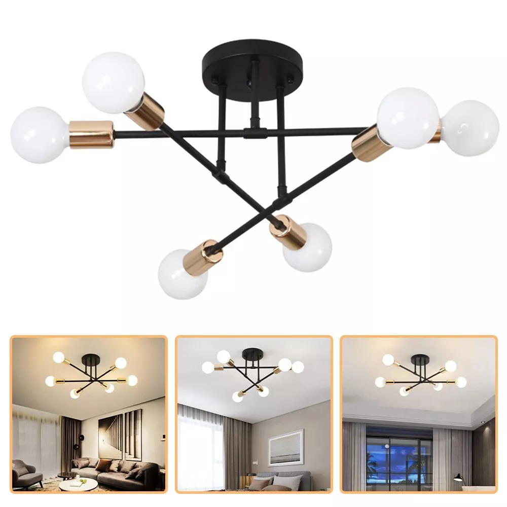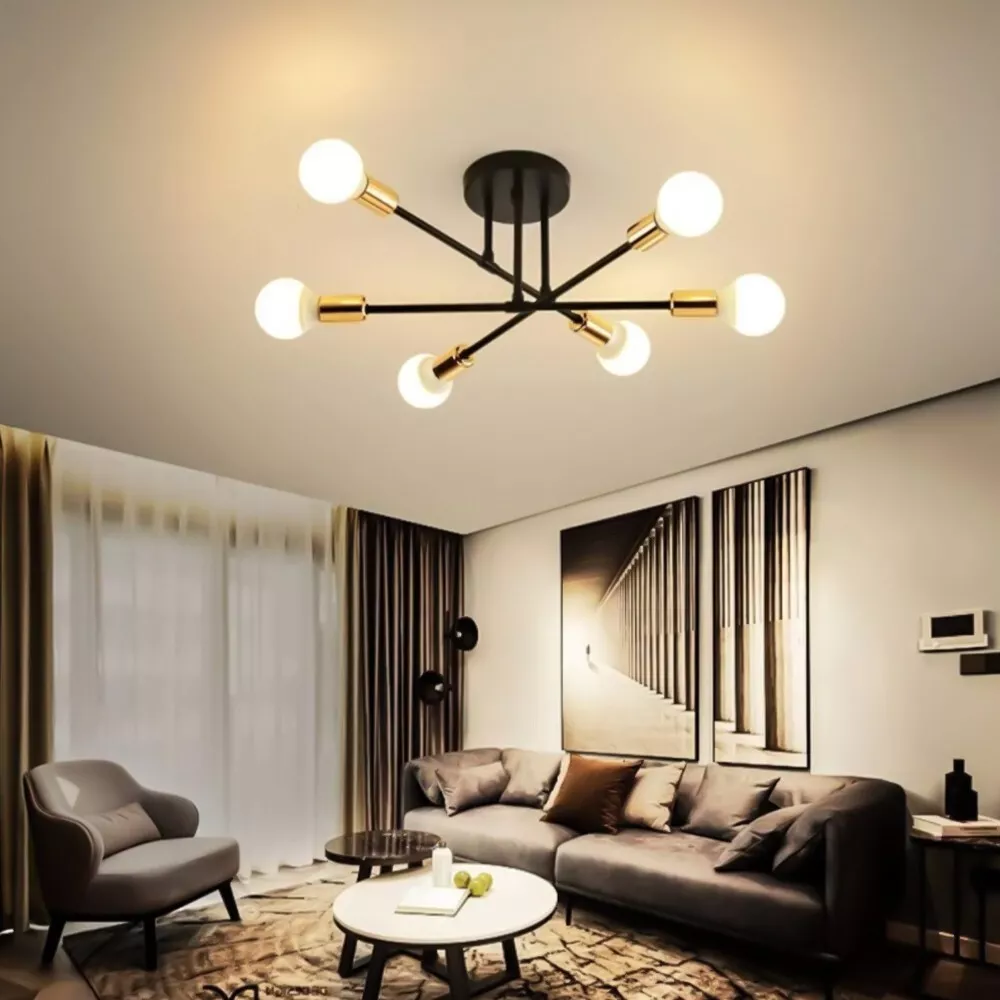 This 6-Way Sputnik Chandelier LED Ceiling Light combines a modern and vintage look, made with durable iron material for lasting use. It’s ideal for bedrooms, dining rooms, living rooms, or cafés, adding a touch of industrial style to your home décor. The chandelier uses an E27 base for bulbs, allowing you to choose your preferred lighting solution (bulbs not included). With its stylish design and easy installation, this pendant light enhances the atmosphere of any space while offering functionality and elegance.