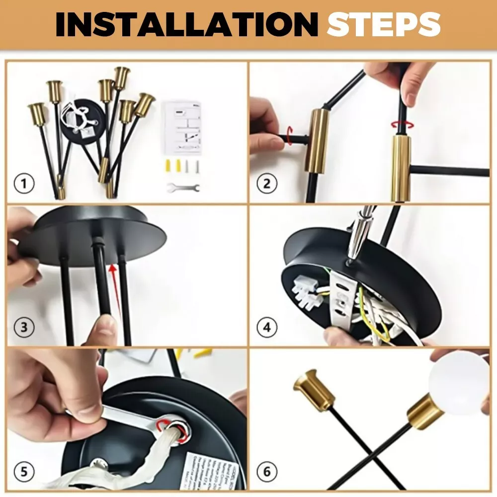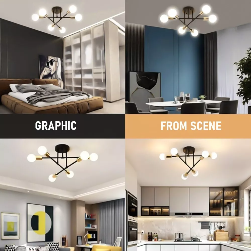 Add a touch of vintage style and modern functionality to your home with the 6 Way Sputnik Chandeliers LED Ceiling Light. Perfect for any room, this pendant light will brighten up your space and impress your guests. Order today and elevate your home's décor!